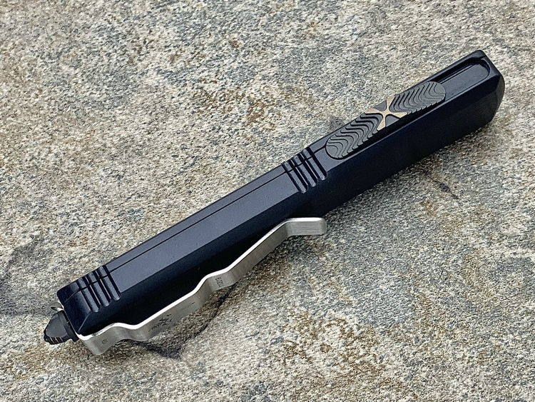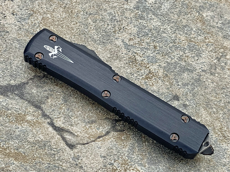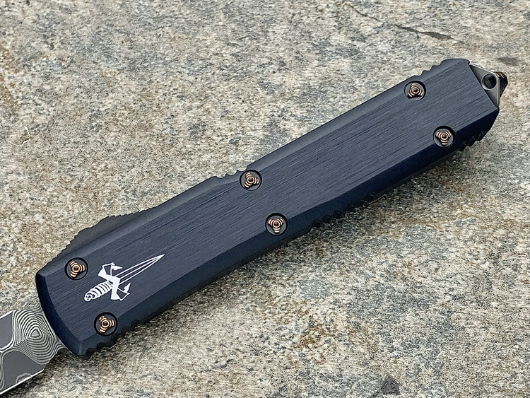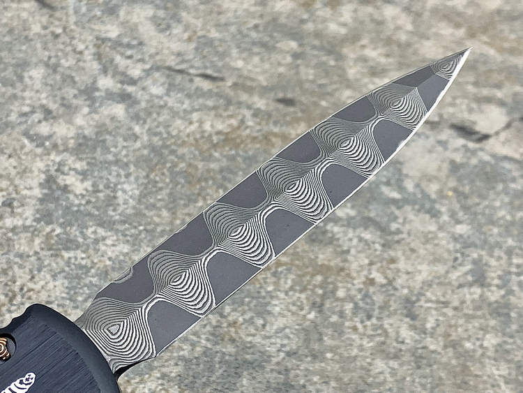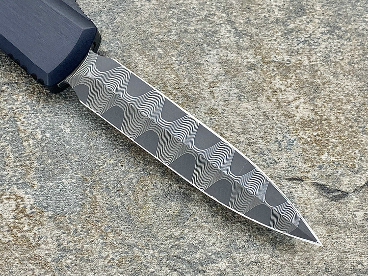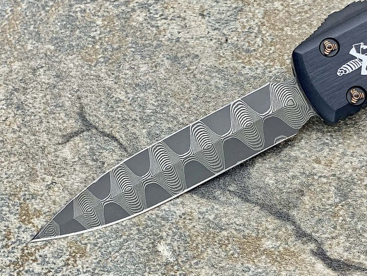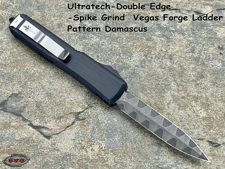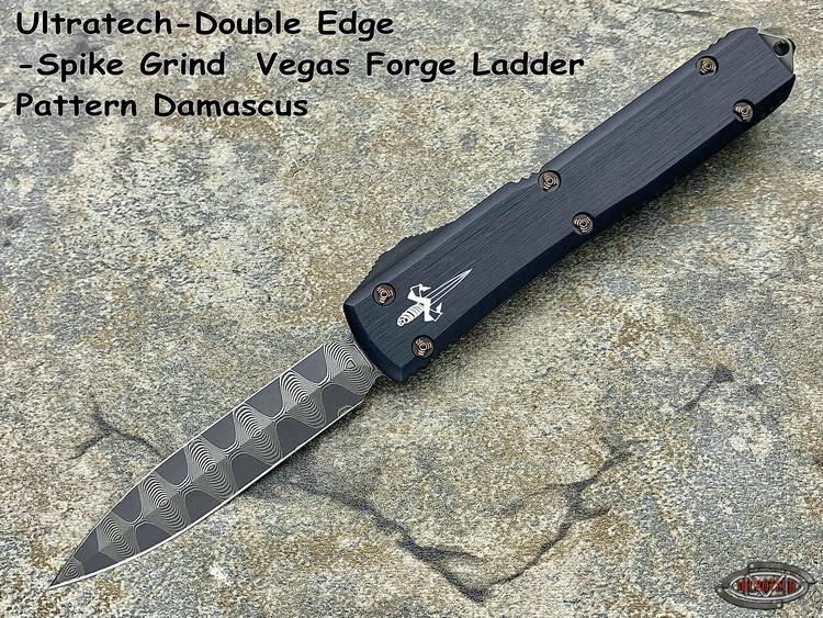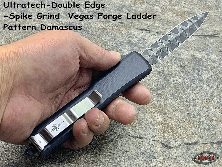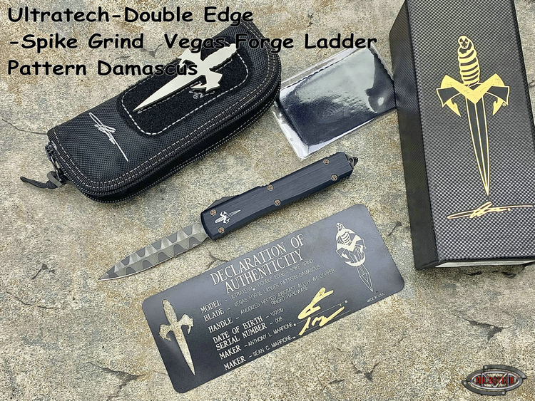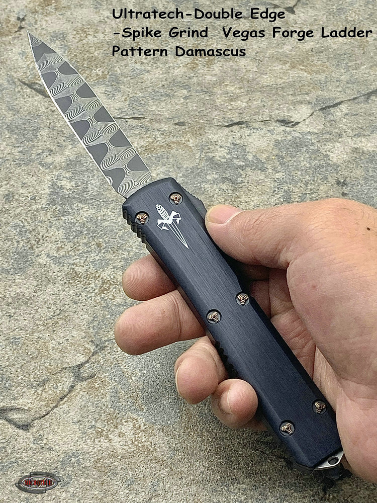Ultratech-Double Edge-Spike Grind Vegas Forge Ladder Pattern Damascus Anodized Hefted Alloy w/Copper Ringed Hardware S/N008 Made in USA