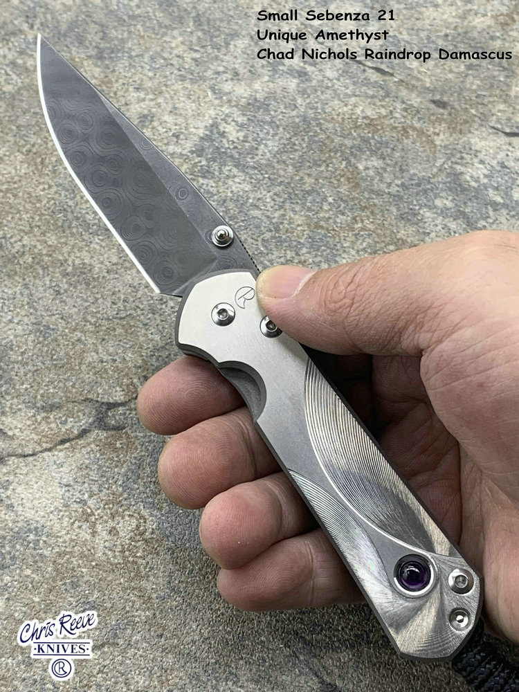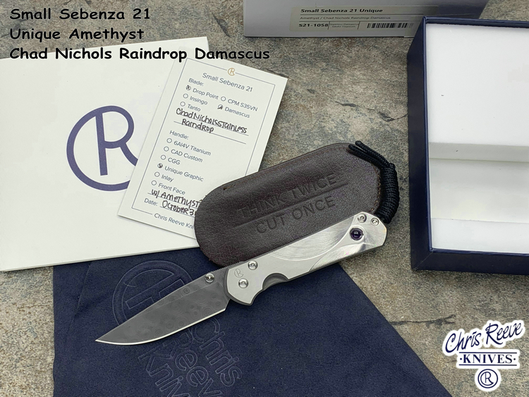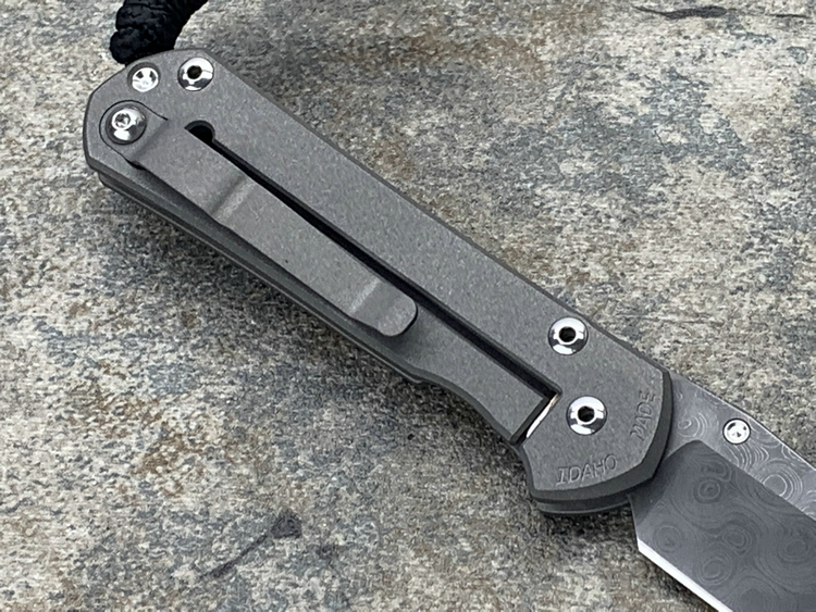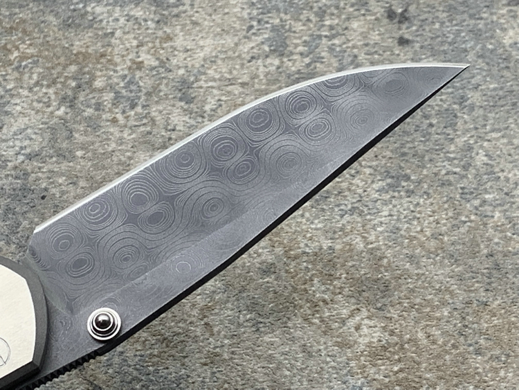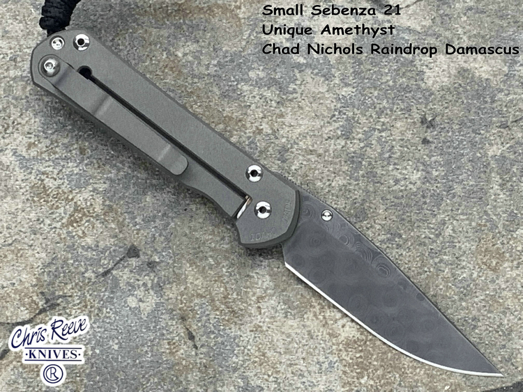 全长:177mm 刃长:76mm 刃厚:3mm 刃宽:23.5mm 刃材:Chad Nichols Raindrop Damascus 硬度:61HRC 闭合:101mm 重量:83g 原产地:美国