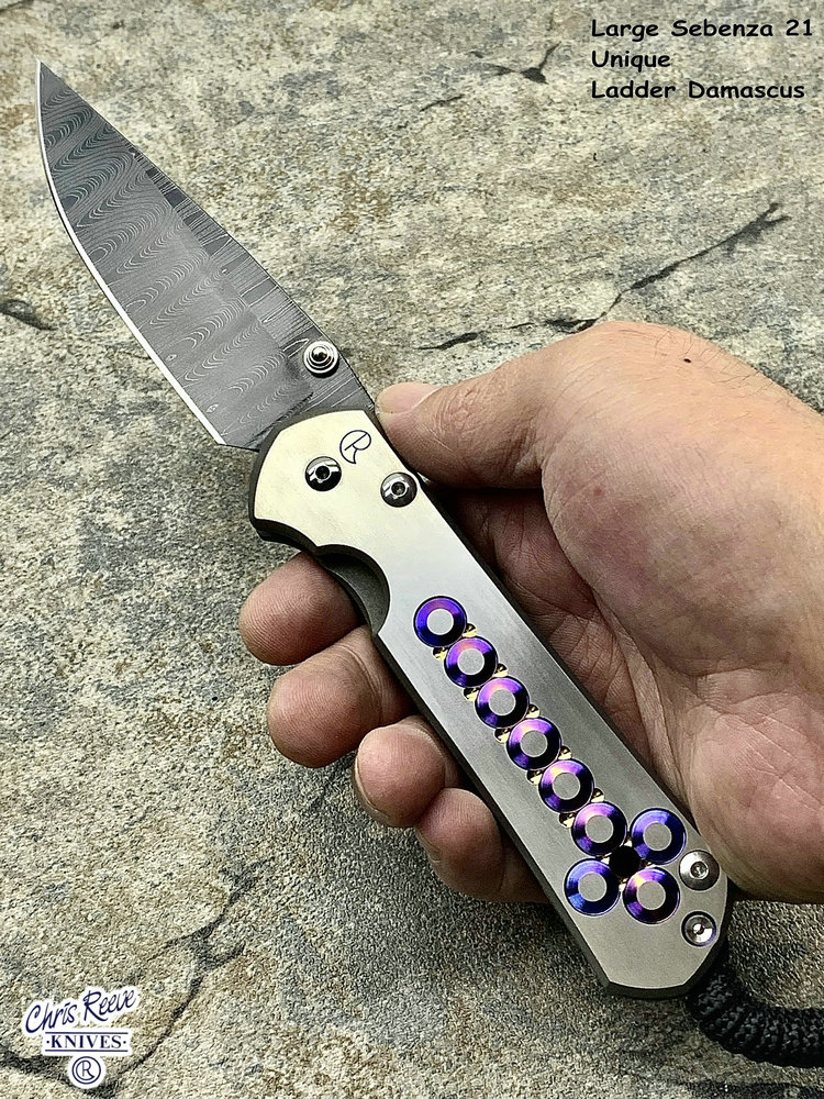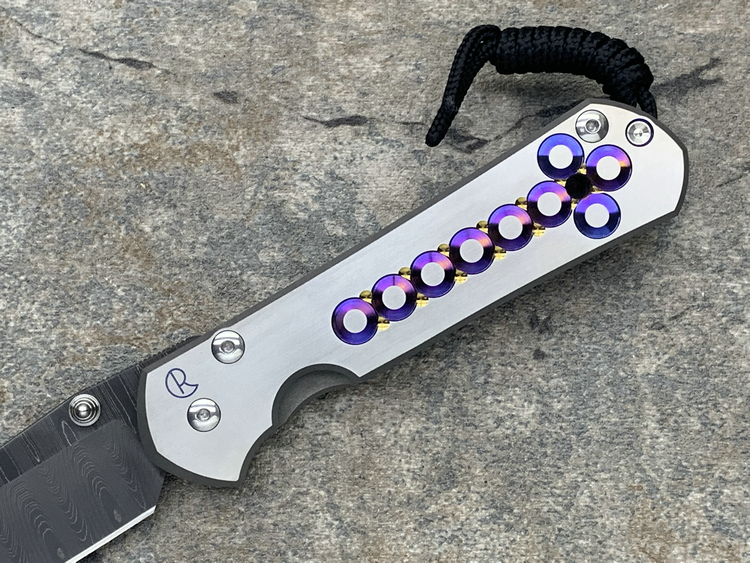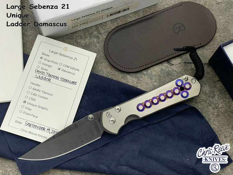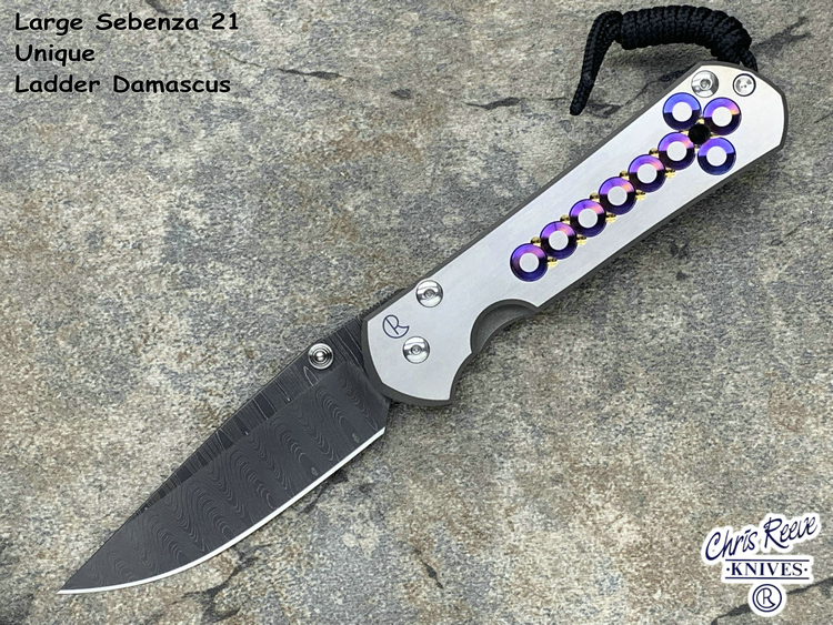 全长:214mm 刃长:92mm 刃厚:3mm 刃宽:28mm 刃材:Devin Thomas Stainless Ladder Damascus Damascus 硬度:61HRC 闭合:121.5mm 重量:134g 原产地:美国