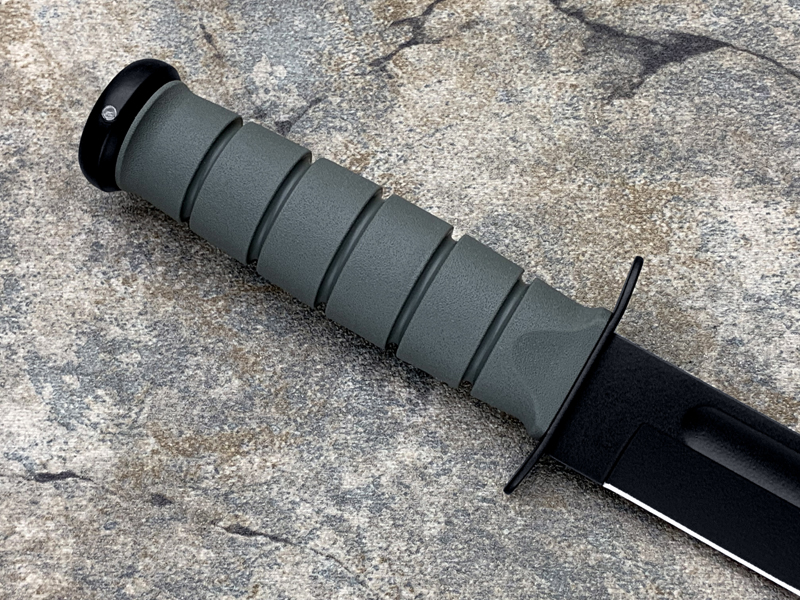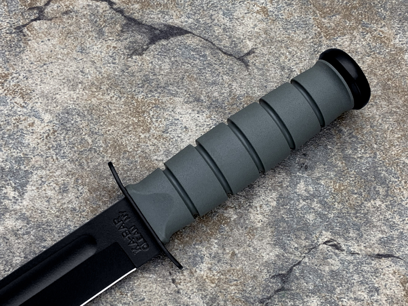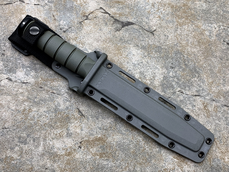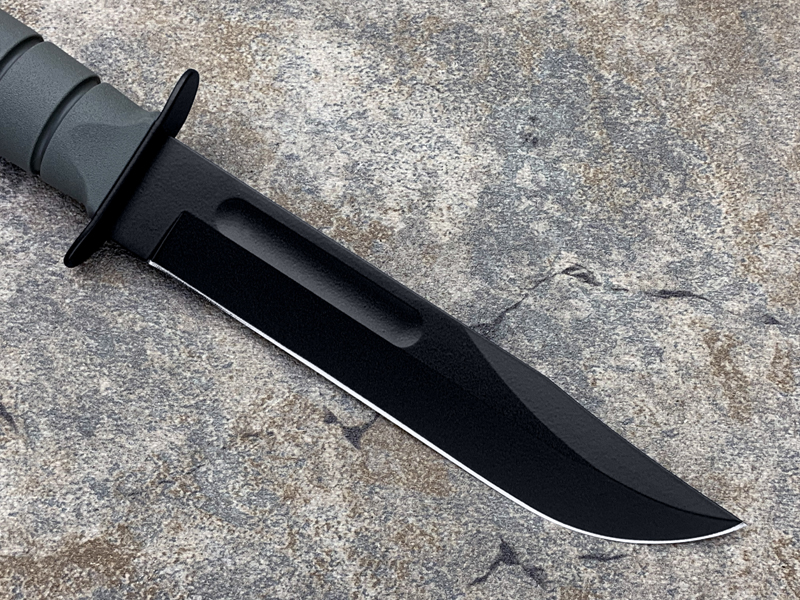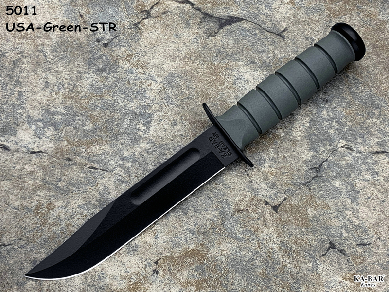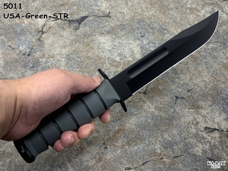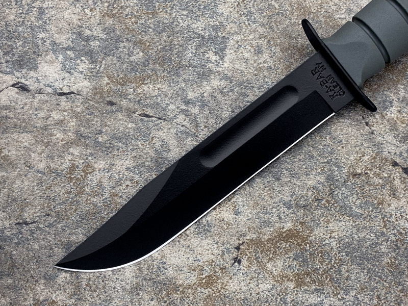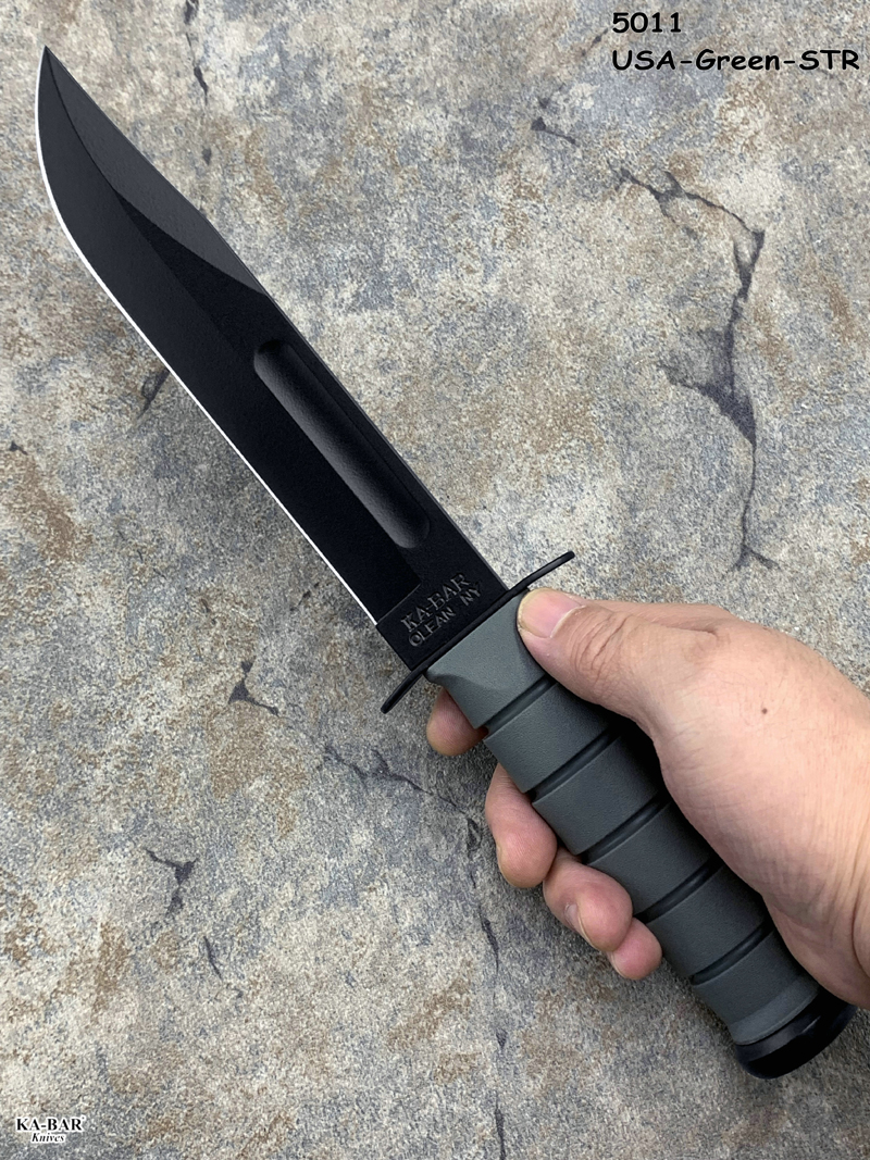 全长: 299mm 刃长: 178mm 刃材: 1095 Cro-Van 硬 度: 59-60HRC 刃厚: 4.2mm 刃宽: 31.5mm 表面: 黑色环氧涂层 柄材: Kraton 重量: 291g 原产地: 美国 美国首都华盛顿广场上,有一座巨型雕像,五名海军陆战队的士兵正奋力插起一面美国国旗(刀上LOGO画象)。这座雕像是根据美联社记者乔.罗森塔尔拍摄的一张二战著名照片塑成的,而这张照片表现的正是硫磺岛上的血战。 历史悠久之刀厂,着名於军刀、刺刀、格斗刀等,美国海军陆战队在韩战、越战时采用之军刀。KA BAR Knives, Inc 总公司Alcas Corporation是国际名刀具工厂,世界知名出品有U.S.M.C.战术刀、打猎刀、鱼刀、收藏刀等… KA BAR 刀厂总部成立于美国纽约,曾於1998年庆祝其公司成立100周年。 Ka-bar刀厂以前叫做Union Razor Co.,被称为Ka-bar 是由于一位猎人的推荐信函。这位猎人在打猎的途中遇到了熊,子弹用尽的他只好拿起了他那由Union Razor Co.所造的高品质猎刀来与熊搏斗,因而保住了性命,他在信上写到这把刀可以杀熊(Kill a bear ),但是因为这位猎人的教育层度不高,将它写成Kil a bar,后来又被人们缩写成Ka-bar,因此Ka-bar这个名字便被大家所传颂,甚至比Union更有名气,因此在1951年时,Union Razor公司正式改名为Ka-bar ,但在此之前Union公司便已在他们生产的刀上打上Ka-bar的标志。 自1942年二次大战爆发不久,KA BAR刀厂提交首批軍刃與U.S.M.C. (美国海军陆战队) 队员使用。军方于3年后,公元1945年确认其军刀之可靠性能,而把该刀命名为U.S.M.C. Fighting / Utility Knife "美国海军陆战格斗及多用途刀",而其它武装部队也开始被建议采用此刀。 KABAR生产了共超过一百万把军刀,曾在供不应求之情况下,KABAR刀厂直接受权予其他生产商生产其他类型之军刀给各军队使用,及在刀上印上其他生产商之名称,但出厂的每一把刀也被认为名符其实是KABAR军刀 ! 是因为基於它的质量和耐用性,获很多使用者对此刀之信赖,作为日常工作之用 -- 例如修理装置、挖狐洞、磨利帐蓬支柱、开罐头和最重要是在战乱时代作为一种防身利器。KABAR 军刀的知名度於二次大战後大大提高,其後於韩,越战,沙漠风暴等战争中也被积极采用。 KA-BAR以生产直柄刀闻名于世。美国KA-BAR卡巴公司少量新刀型号在公司台湾基地生产,但基本所有产品都在美国基地生产。美国KA-BAR刀具公司产品全部从美国进口。军警人员采用。 1800年代末期,纽约西部及宾州北部地区。当时有超过30家以上刀厂的规模。但随着不断地淘汰及经济上的冲击,目前只硕果仅存了少部份质优的厂商。而KA-BAR刀具公司就是其中之一。直到1996年经过纽约州奥林市的阿卡斯公司机(Alcas Corporation)重整。KA-BAR刀厂现在在产品的制作、研发、创新及客服上都更广得回响,产品优越品质为大众所认同。以阿卡斯角族的决心魄力,KA-BAR刀厂必能更上一层楼。