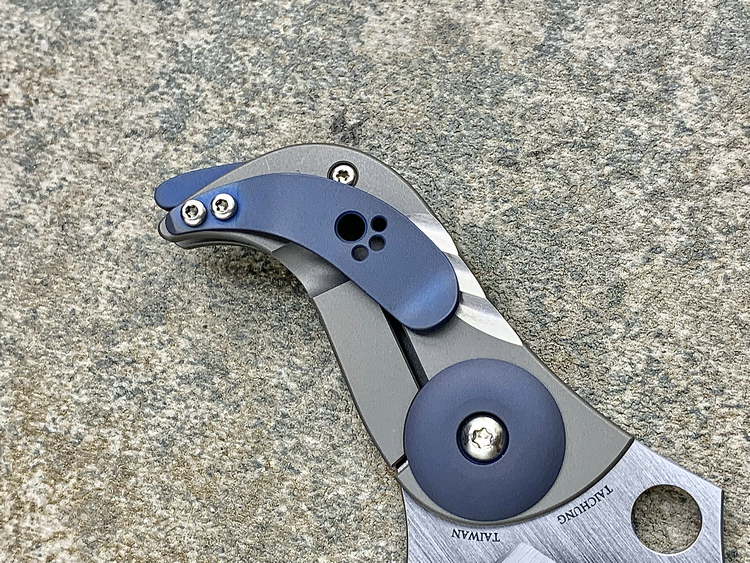 日本刀匠樱井和幸与蜘蛛合作版最受欢迎的Pochi设计动物系列喷砂钛合金手柄蓝色钛金属可动式尾巴与背夹。