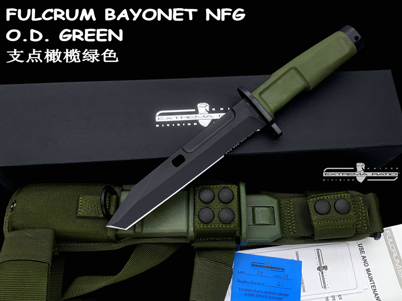 EXTREMA RATIO 极端武力 FULCRUM BAYONET NFG O.D. GREEN橄榄绿色支点 黑色刃 绿色鞘直刀 COD.04.1000.0300/GRN(暂无现货)