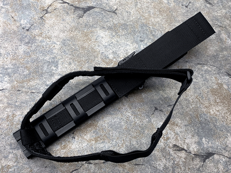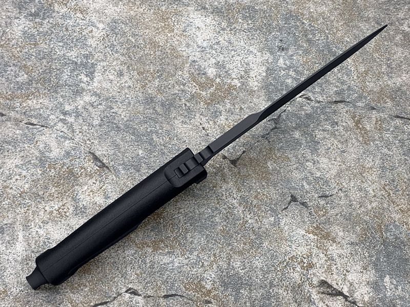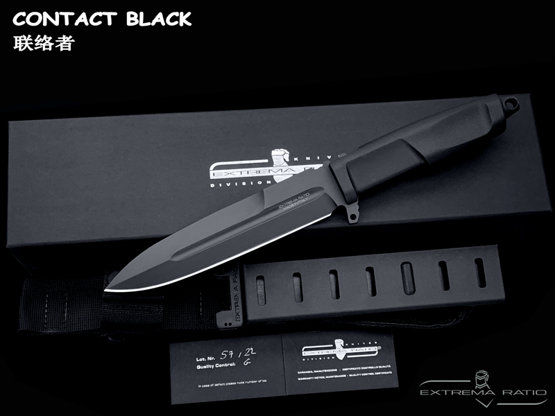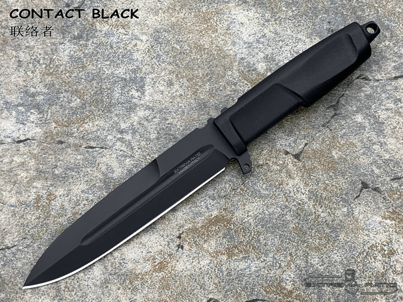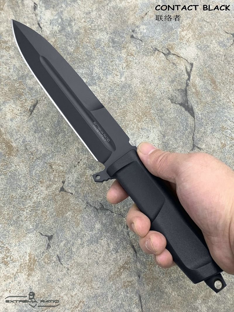 全长:293mm 刃长:163mm 刃厚:6.3mm 刃宽:33.3mm 刃材:N690 硬度:58HRC 产地:意大利 重量:303g Extrema Ratio 联络者。 矛状刀型、大平磨和菱形几何形状。 它有一个下部护手以保护手免受意外割伤,上部拇指槽以提高操控性,沿刀片开大凹槽。 所有这些特征使 Contact 型号获得了现在著名的悲悯者的哥哥的称号,在比例和某些技术特征上进行了改进。 新系列多用途刀具中的第一款。 刀片由 Böhler N690 钢制成,硬度为 58 HRC,黑色版本采用化学抛光涂层。 该系列中的所有其他颜色都有石洗饰面刀片。 手柄仍然是橡胶材质,但组装不再通过侧面螺丝而是通过截锥形不锈钢尾钉固定,该尾钉拧在底部并安装在一个特殊的刀座内,这使得它坚固且平衡良好。 护套是极简主义的,通过采用二级保留系统去除了大部分织物,让人想起了其灵感来源的款式。 主鞘由耐冲击尼龙注塑而成。 辅助固定系统是可逆的,可实现刀的灵巧便携性。 由于锥形形状非常适合刀的快速插入和拔出,刀片在护套的插入中被引导。 要拔出刀片,扳机上的压力就足够了,从而脱离将刀片安全地固定在护套中的保险装置。 一个系统被插入到ABS外壳的水平槽中,为刀片提供缓冲,以避免在将刀片放入内部时发出震动噪音。 尼龙护套的背面设计用于与 M.O.L.L.E. 系统连接。 织物部分减少到最低限度,具有经典的双按钮安全带,带安全带环和带橡胶加固的大腿带,以防旋转。Extreme Ratio旨在将刀具的厚度和尺寸降至最低,但不会节省结构强度和安全附件。
