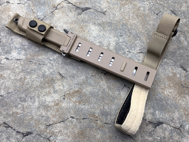简单描述: EXTREMA RATIO 极端武力 CONTACT DESERT 联络者大号沙色 极简主义风格刀鞘 多功能战术直刀 04.1000.0215/DW