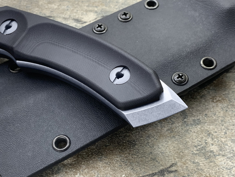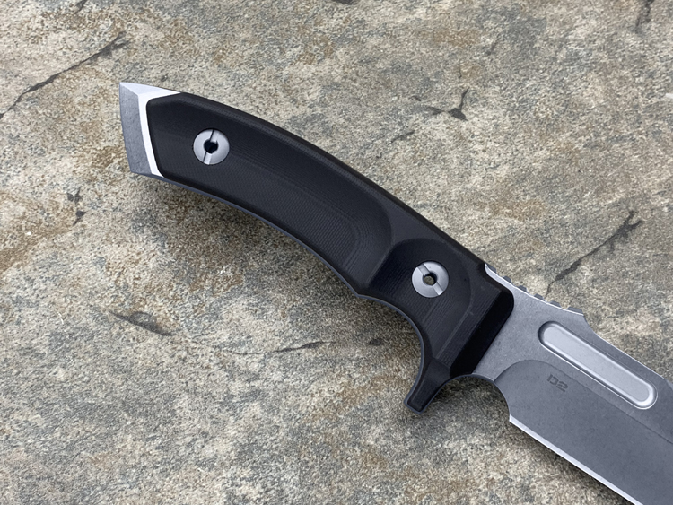 战术八的刀片由 D2 (1.2379) 冷作钢制成,由于铬含量为 11.8%,因此具有强大的锋利保持性但需要一定的基本保养。 如果护理不当,可能会发生腐蚀。 作为预防措施,刀具应定期清洁、干燥和重新上油,以防止生锈和腐蚀。 特别是当刀接触到不明物质或酸性液体或在海边使用时。