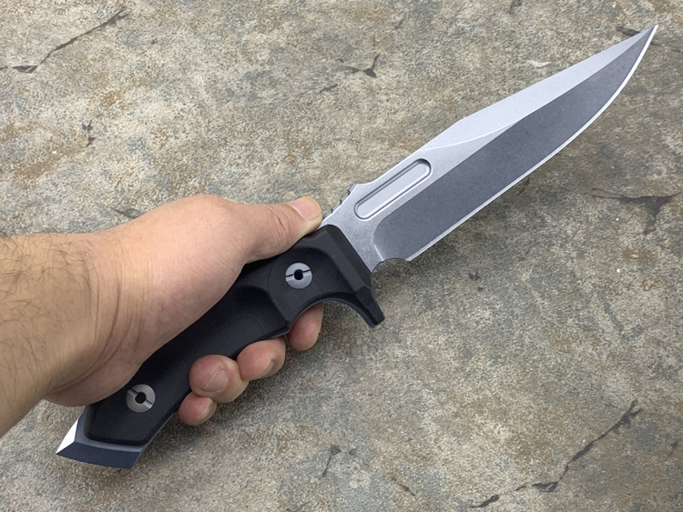 坚固的 17.4 厘米长和 6 毫米厚的 Bowie 刀片适用于广泛的应用。对于高切削耐用性和刀片耐用性,选择了著名的D2工具钢。石洗表面创造了一个防刮刃面,也增加了刀片的耐腐蚀性。坚固的全龙骨结构配以黑色 G-10。精致的 3D 铣削表面为 Tactical 8 提供了出色且安全的握持感。护手前明显且圆润的手指凹槽可以让手指向前以进行强力或精细的工作。手柄末端的隐藏孔提供了安装挂绳的选项。