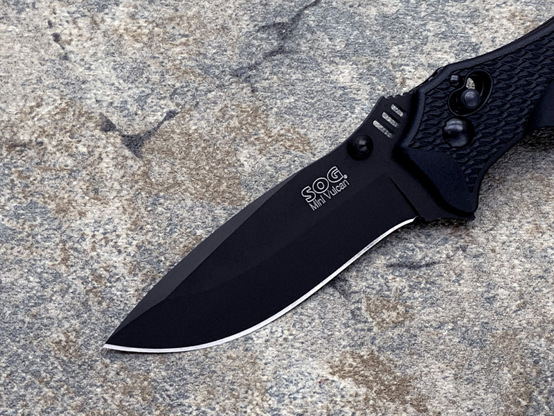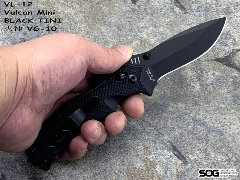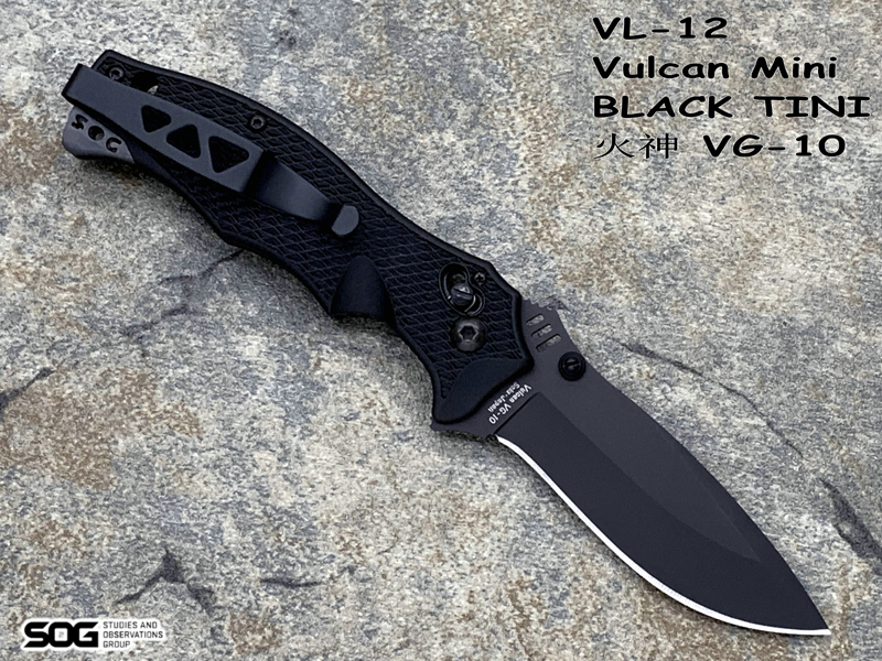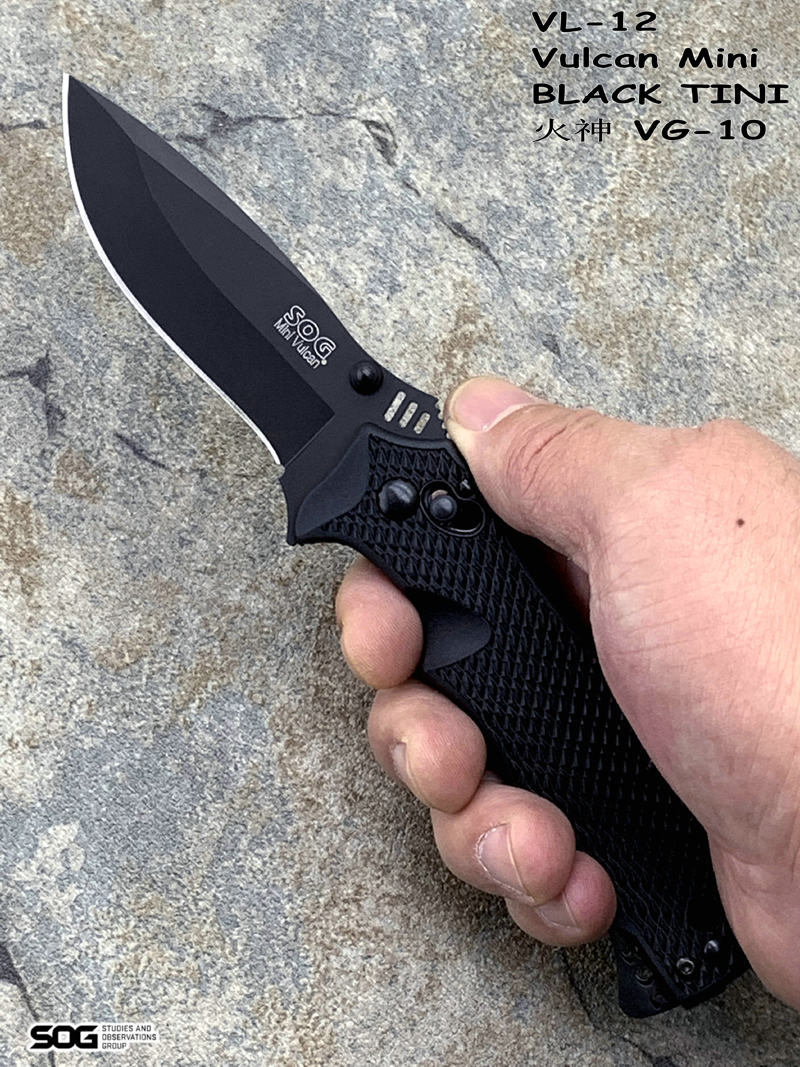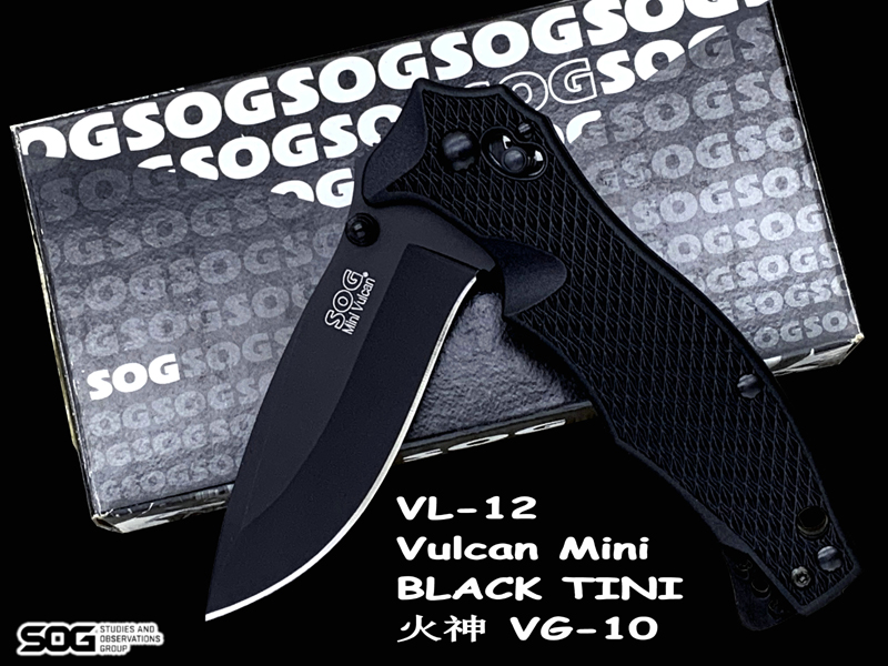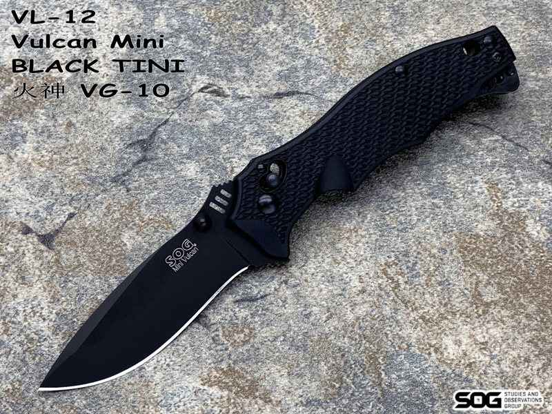 SOG VL-12 Vulcan Mini BLACK TINI 火神系列 VG-10 刃材 鱼鳍快开 轴锁 Zytel柄 钛镍涂层水滴头战术折刀