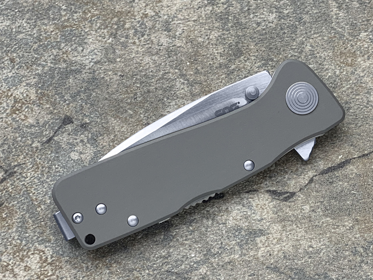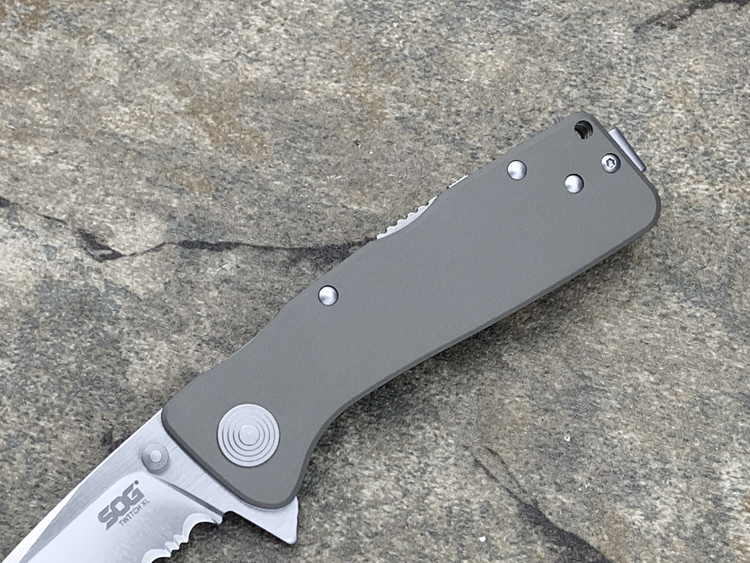 全长:193mm 刃长:84mm 刃材:AUS-8A 硬度:57-58HRC 刃厚:2.8mm 表面:缎面 闭合:111mm 柄材:硬质阳极氧化铝6061-T6 锁型:背锁 重量:121g 原产地:美国 轻拨鱼鳍快开即可做到迅疾出刀,背锁设计,背部有保险装置以免误开,干净利落的拉丝刃面配素雅的铝合金刀柄给人以清雅大方的感觉,现已停产,绝版现货切莫错过! SOG 这个名字起源于越战中的唯一的一支军方秘密特种部队的名字——Studies and Observation Group(侦察组),这支精英部队总是执行最艰苦最危险的任务,正如SOG专业刀具公司擅长制造在恶劣环境下使用的刀具产品和装备的特性一致,因此,为了纪念这支部队,公司以其缩写为名。 始终坚持创造世界上最好最专业的刀具和工具的理念,使SOG成为第一家涵盖直柄刀、折刀和多用途工具等广阔领域的刀具制造厂商,他们的每一件产品都由首席工程师 Spencer Frazer 设计,他的专利发明和独特的现代风格为SOG赢得许多奖项,同时,也使Frazer自己成为业界革新派大师之一。今天,SOG 的产品遍及世界各地,以其强硬的风格和品质占据全球市场。 SOG公司是专门生产军用刀而被世界各国所推崇的品牌!他们的制造经验可谓是制造刀具的个中老手,加上实务经验的累积,所以在美国的特战部队甚至会委托SOG公司专门为他们量身订做各式刀款。 SOG 始终秉持着创造世界上最好、最耐用的刀具理念。