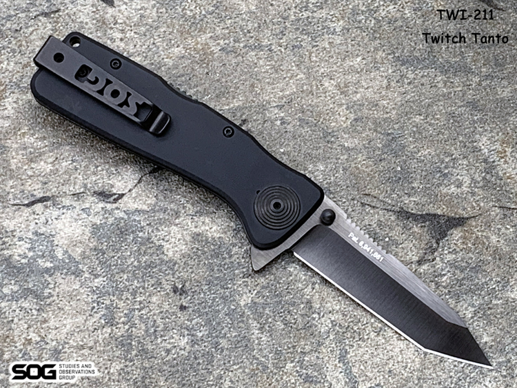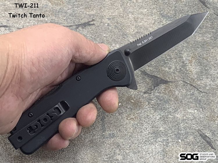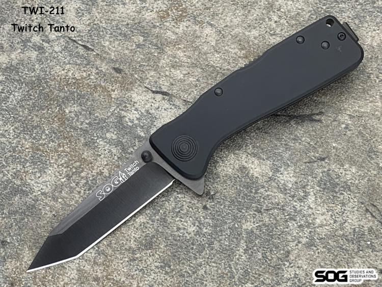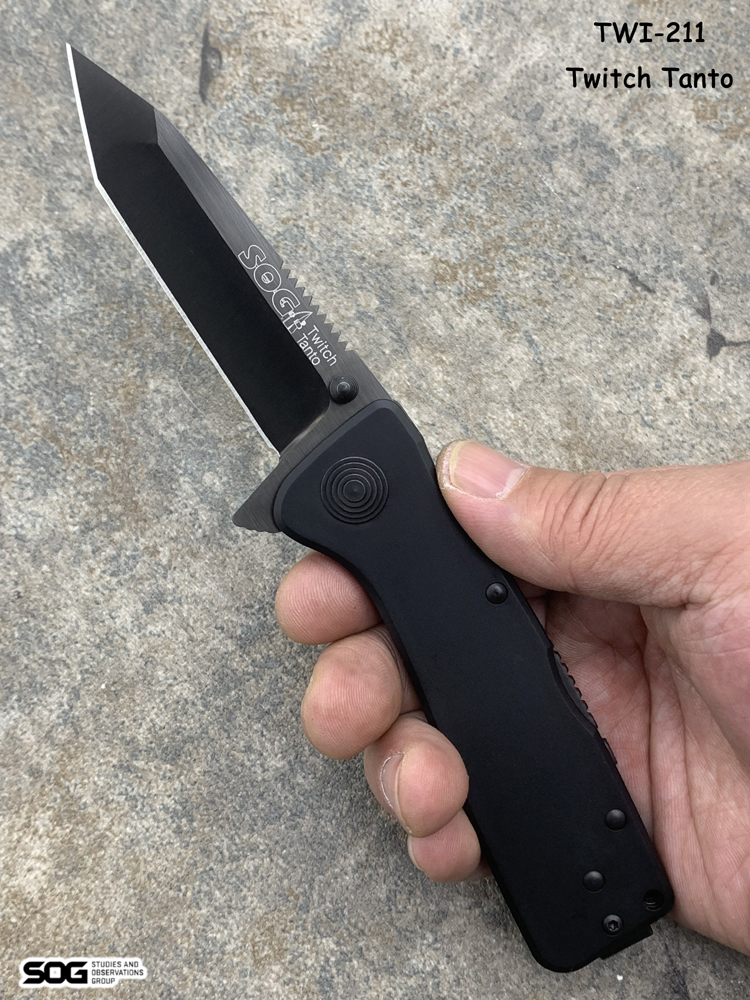 SOG TWI-211 Twitch Tanto 黑色铝柄 Tanto头DLC涂层 助力快开折刀