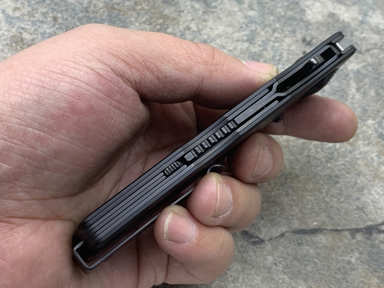 轻拨鱼鳍快开即可做到迅疾出刀,背锁设计,背部有保险装置以免误开,干净利落的DLC刃面配素雅的铝合金刀柄给人以清雅大方的感觉,现已停产,绝版现货切莫错过!