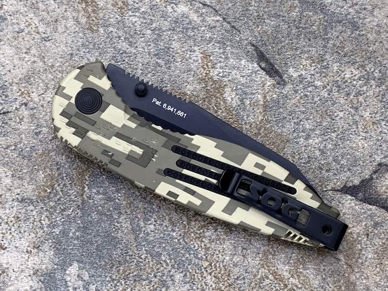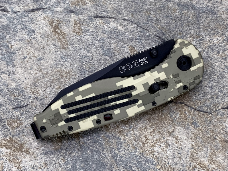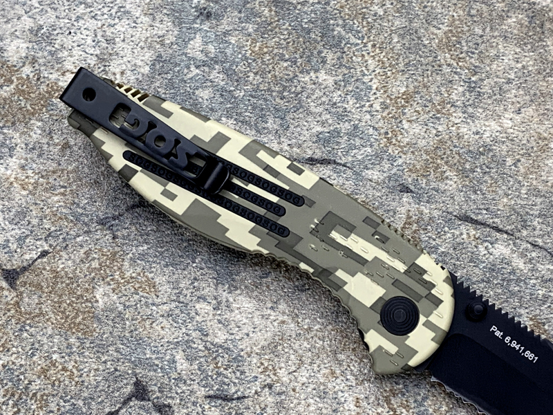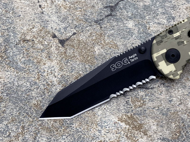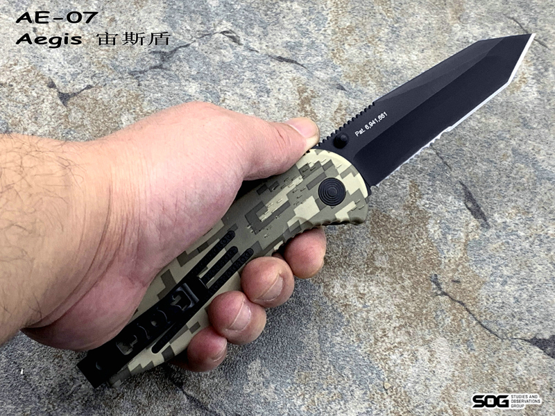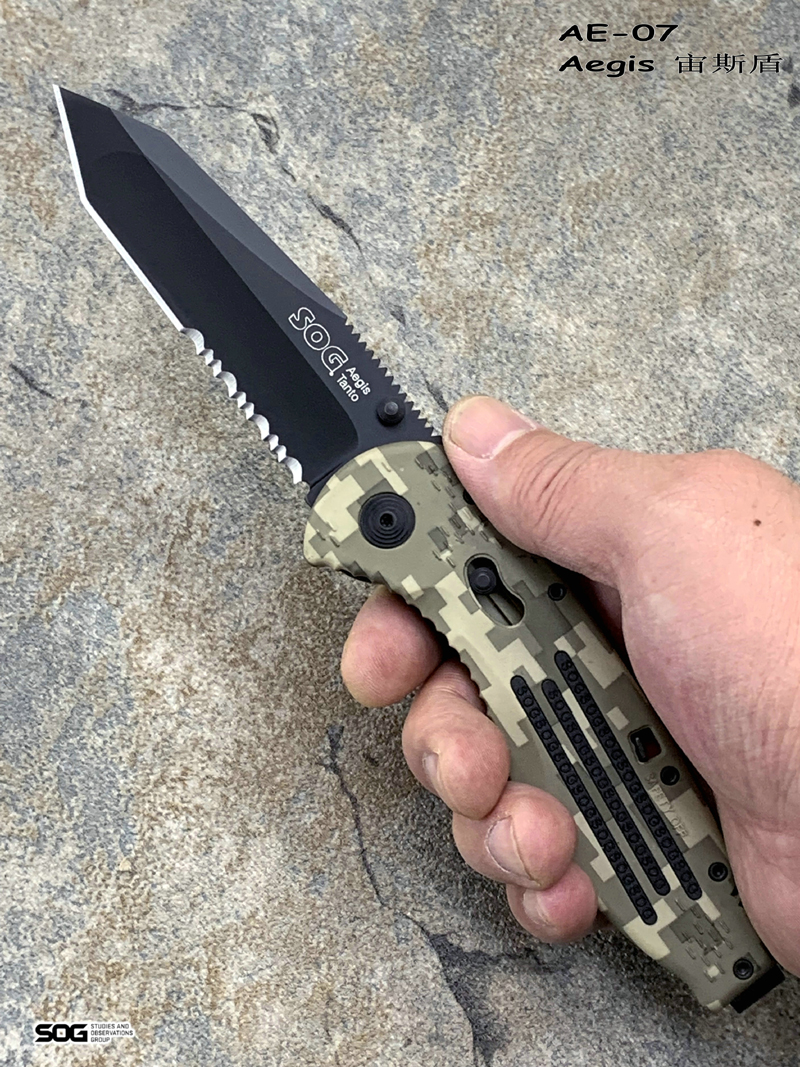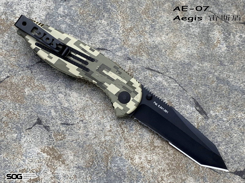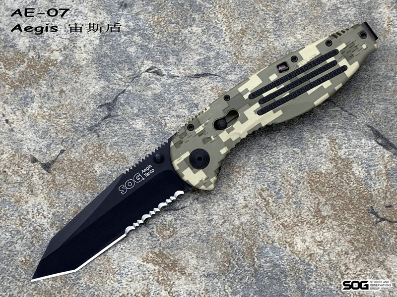 SOG AE-07 Aegis 宙斯盾 沙漠数码迷彩 黑色Tanto半齿 战术快开折刀