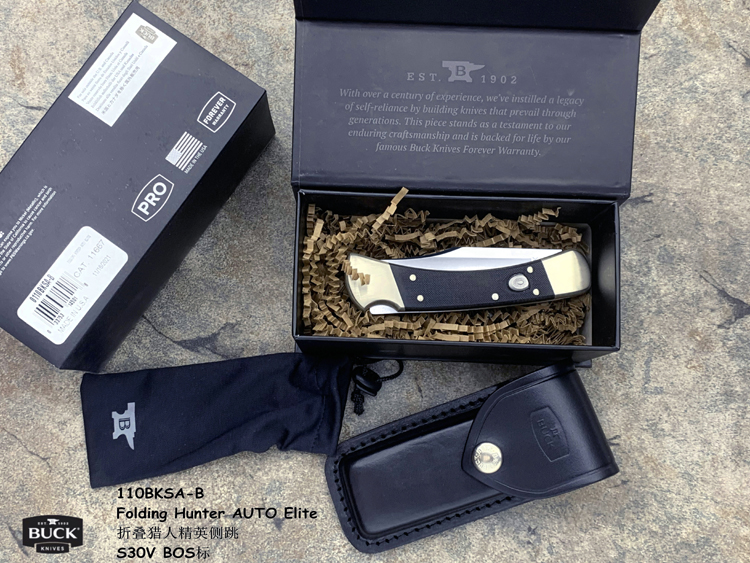 BUCK 巴克0110BKSA-B Folding Hunter AUTO Elite S30V BOS标 G-10柄 折叠猎人精英侧跳(现货)