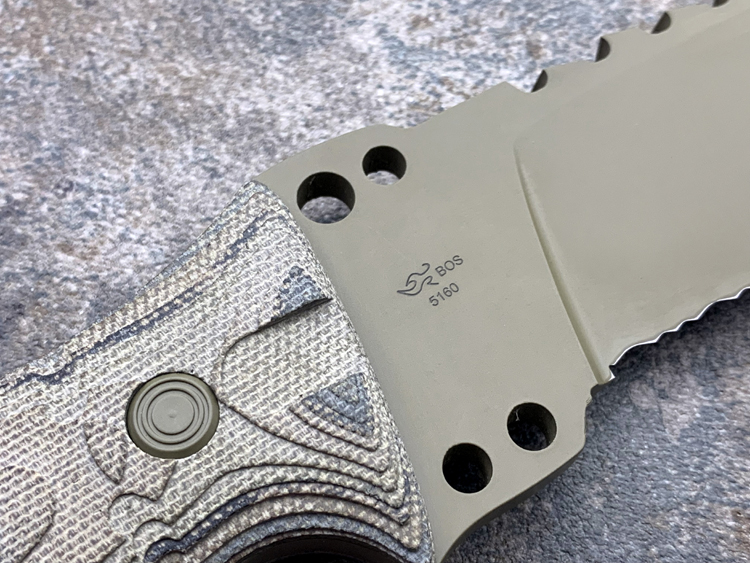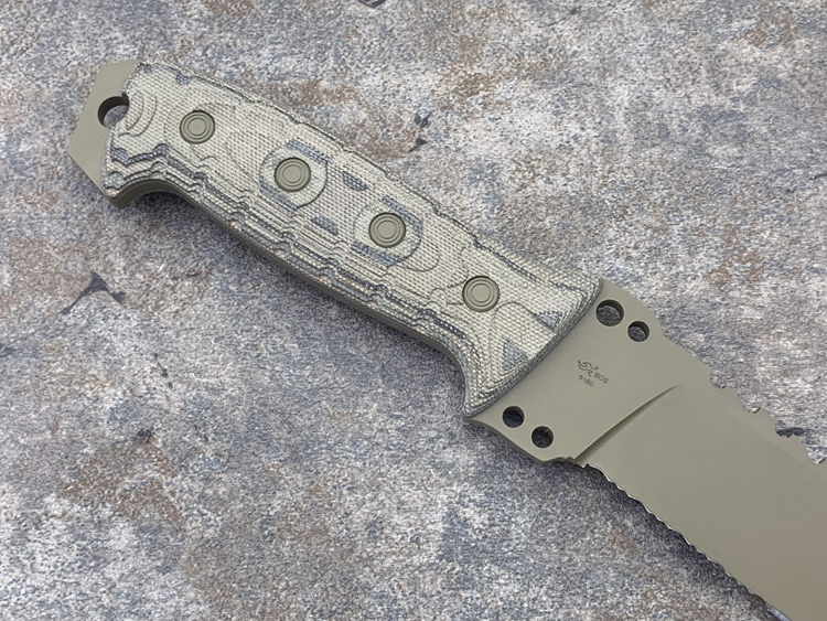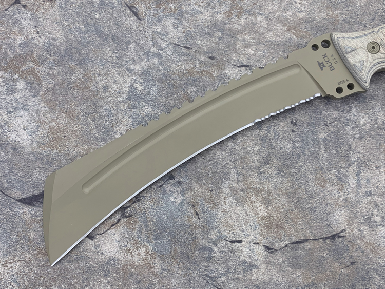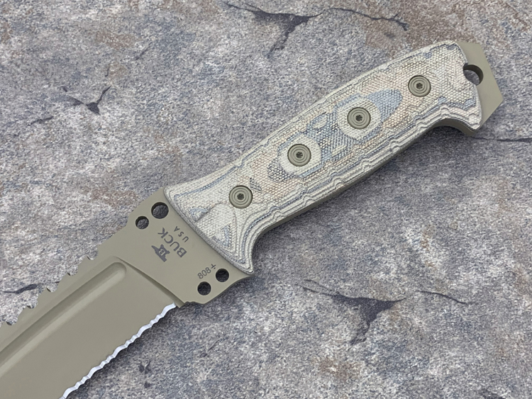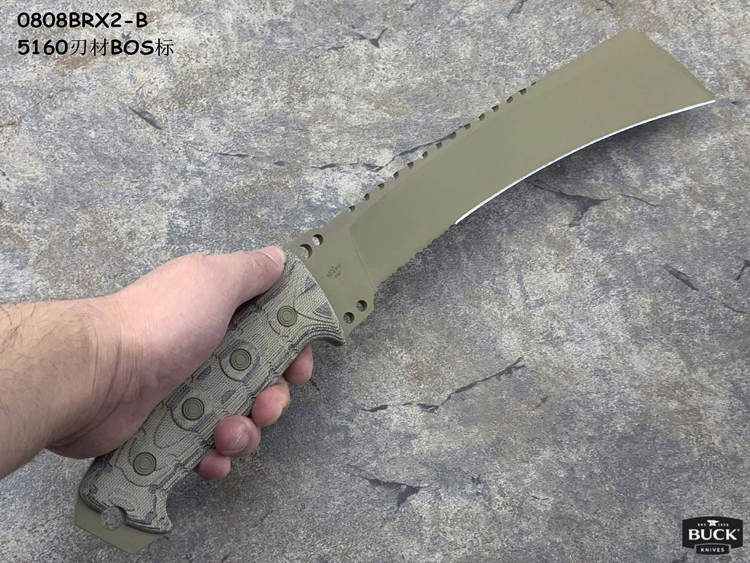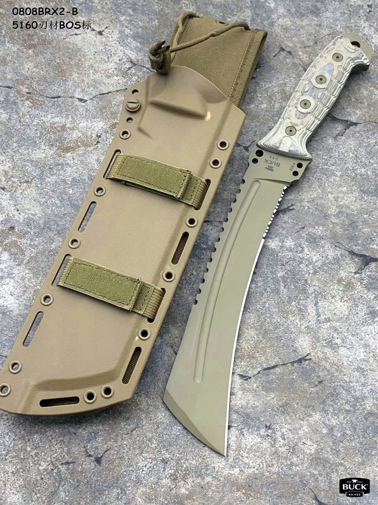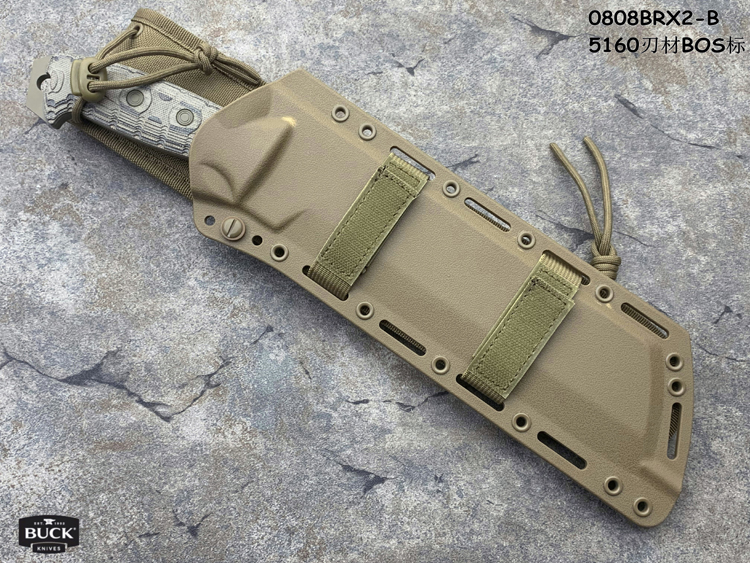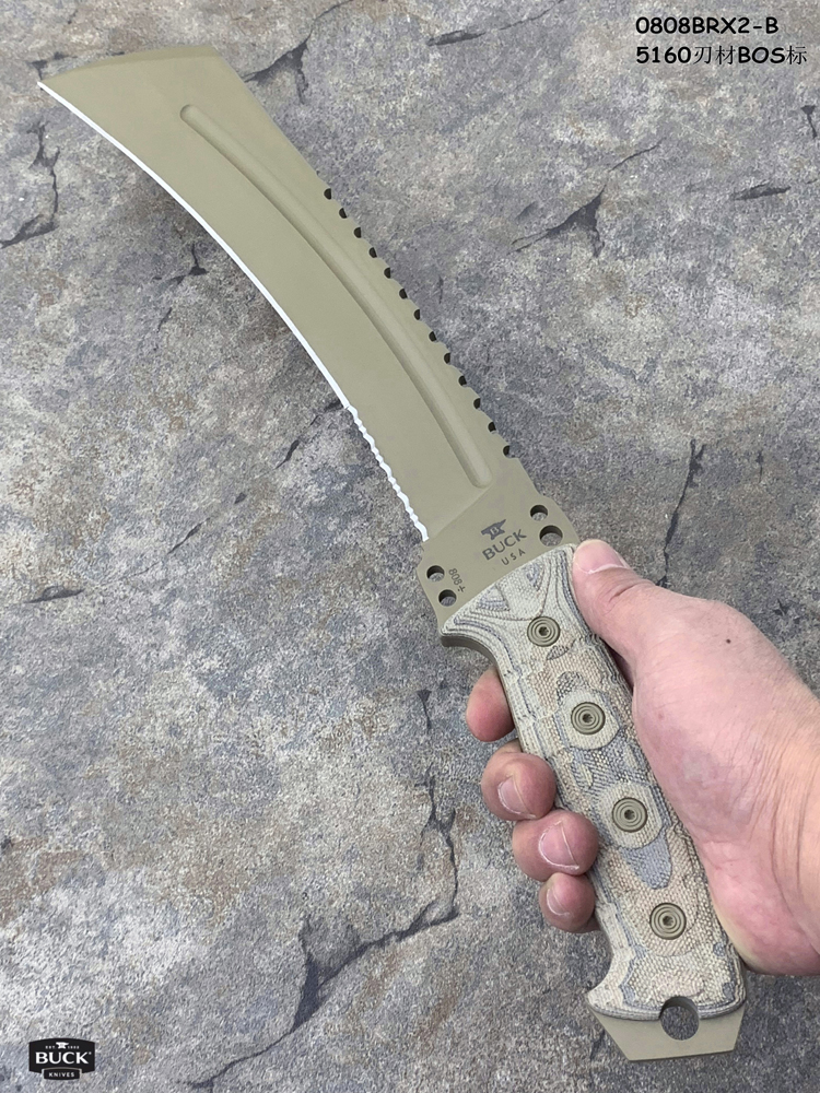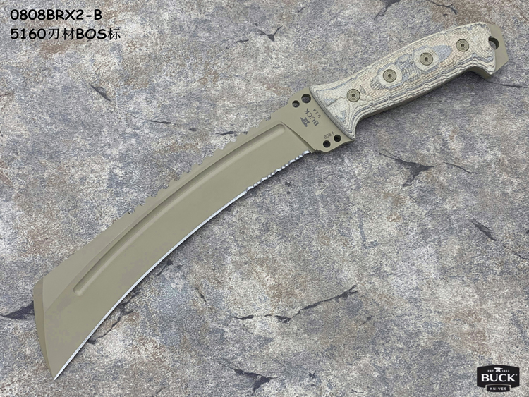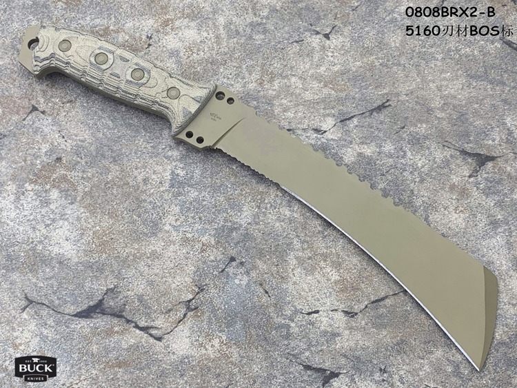 简单描述: BUCK 巴克 0808BRX2-B 5160刃材 BOS标 沙色涂层 米卡塔柄 犀利大背齿 战术直刀