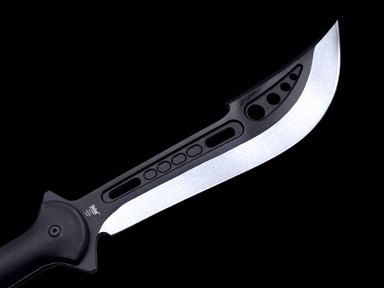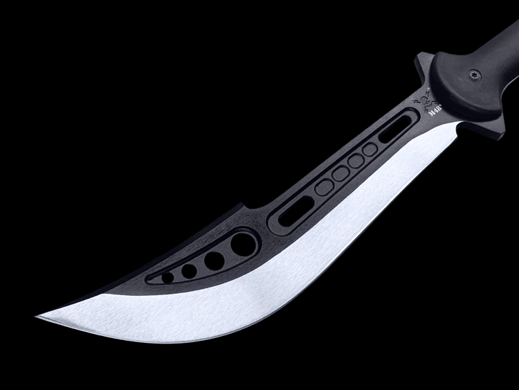 联合刀具推出的新款战术偃月刀,Tempered 2Cr13 stainless steel硬质黑色氧化饰面。手柄采用30%玻璃纤维和增强尼龙材料制成韧性强度俱佳。