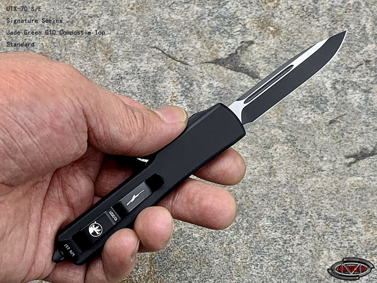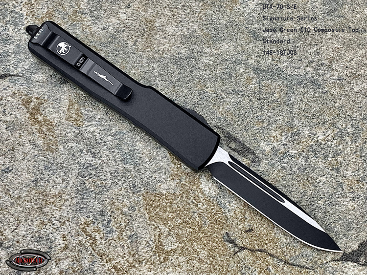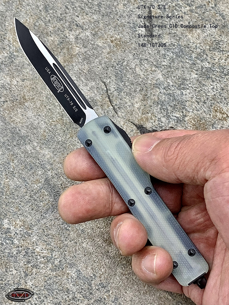 Microtech 微技术 147-1GTJGS UTX-70 D/E Signature Series Jade Green G10 M390刃材 透明G10柄 签名限定版 黑色双锋直跳(暂无现货)