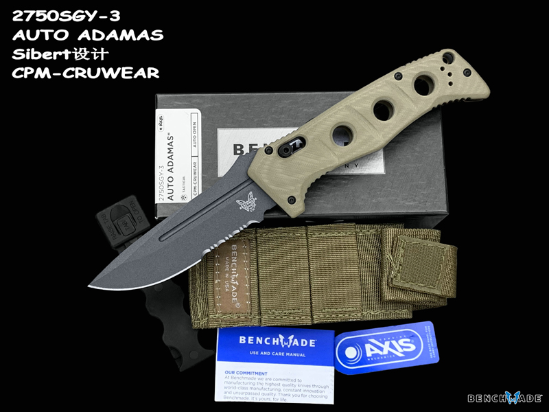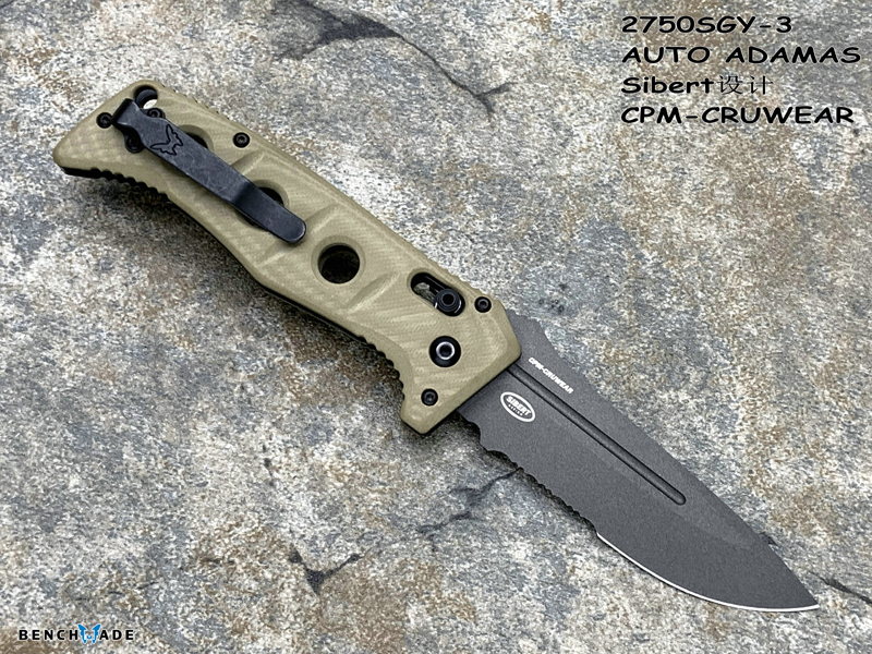 Benchmade 蝴蝶 2750SGY-3 AUTO ADAMAS Sibert设计CPM-CRUWEAR超级强壮工具钢刃材 G10柄硬汉战术助力快开半齿折刀(现货)