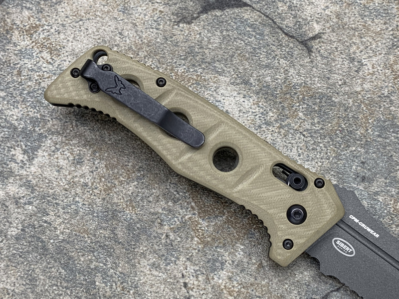 Benchmade 蝴蝶 9570BK-1 MINI CLAYMORE 游骑兵绿色Grivory手柄 CPM-D2钴黑刃全刃迷你战术侧跳(现货)