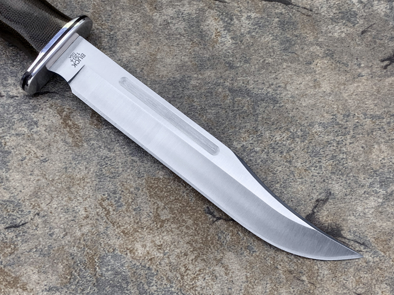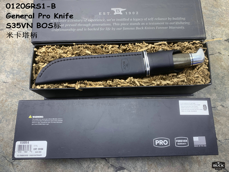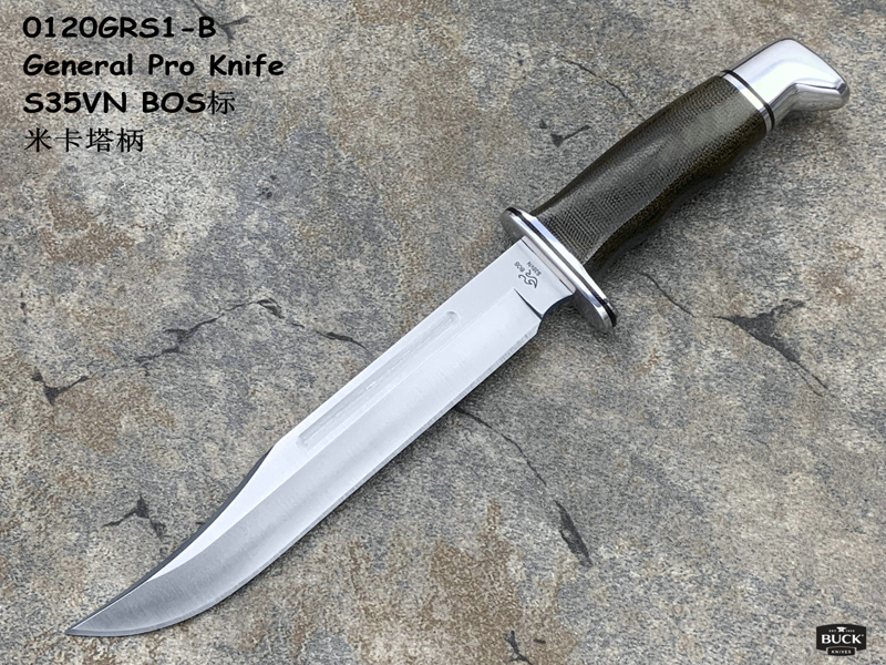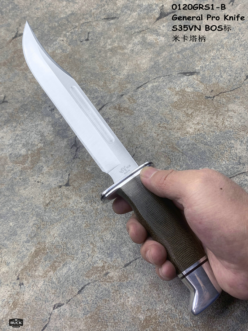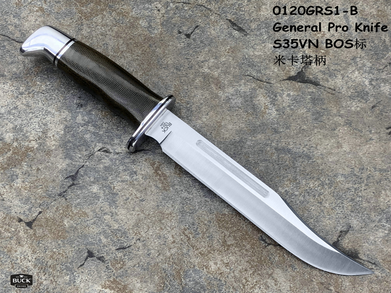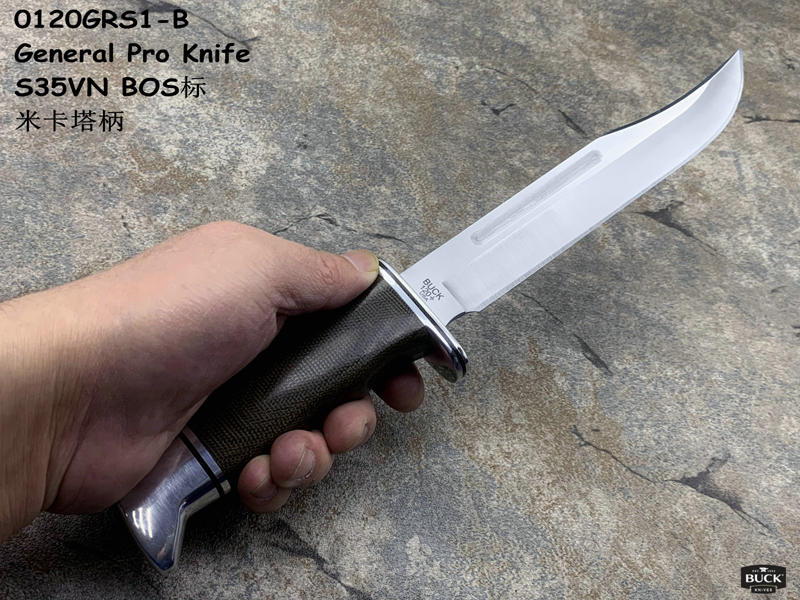 这把0120GRS1-B是巴克公司推出的一款加长型狩猎刀,采用S35VN不锈钢锻造狭长上曲的回形刀片,微微凹磨的手法让刀具拥有出色的切削性能,针状刀尖又拥有出色的穿刺力。这把加长型刀具除了进行切削外还能用来在危机时刻与凶猛野兽进行贴身格斗,为了保证刀具拥有更好的强度,刀身开有血槽增加性能。巴克推出“公平追逐狩猎”系列是为了提醒猎人们在执行狩猎活动时也不要忘记维护动物生态环境。