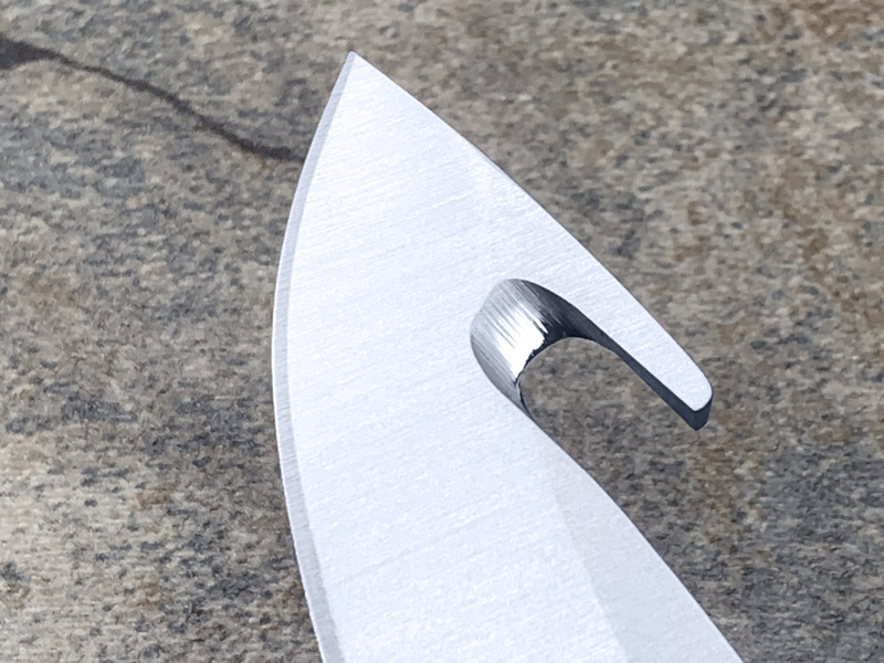 水滴头 guthook刀片由工业标准420HC不锈钢刀片制成,具有极高的锋利保持性,并采用巴克先进的Edge2x刀片技术。