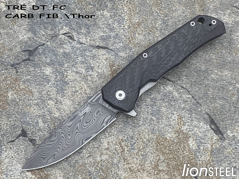 Lionsteel 钢狮 TRE DT FC 瑞典粉末大马士革刃材 碳纤维/钛合金框架锁 鱼鳍快开EDC折刀(暂无现货)