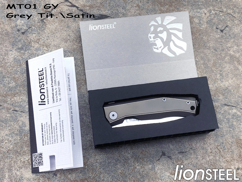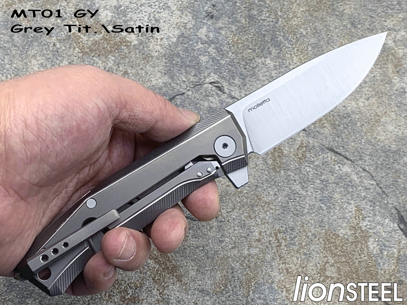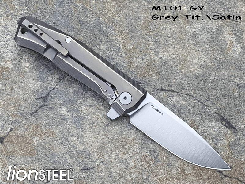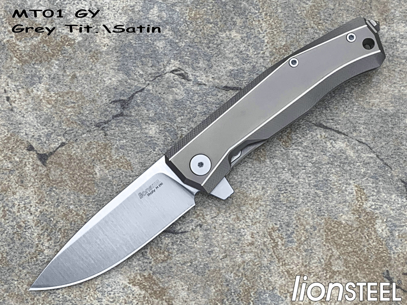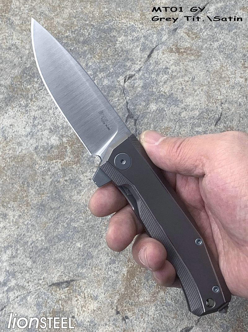 Lionsteel钢狮 MT01 GY Grey Tit.\Satin M390刃材 灰色钛合金柄 鱼鳍快开折刀