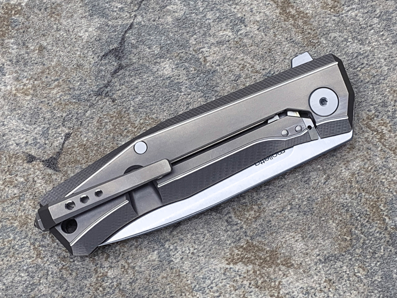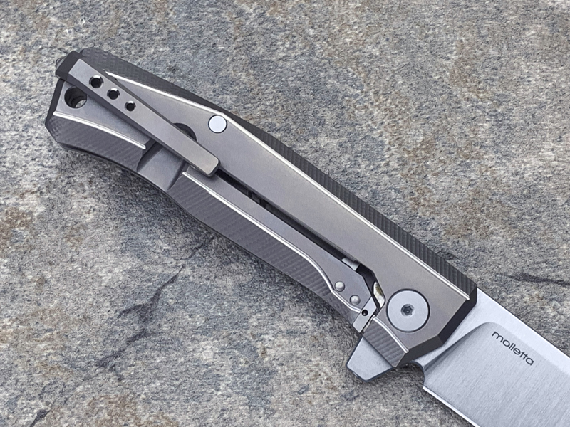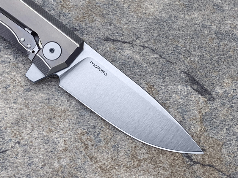 它采用缎面处理的 M390 钢刀片,配备“ReF”(可拆卸翻转系统)和双冠滚珠轴承系统,使刀片更稳定,闭合更顺畅。