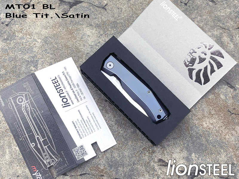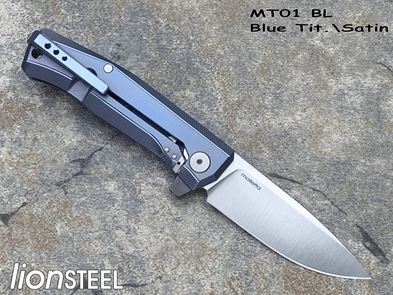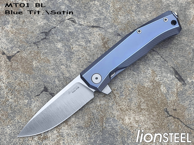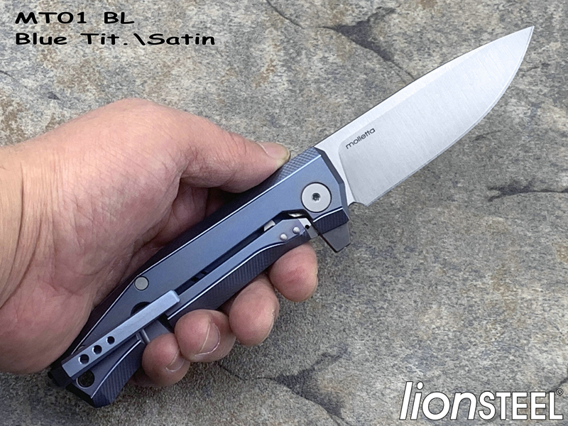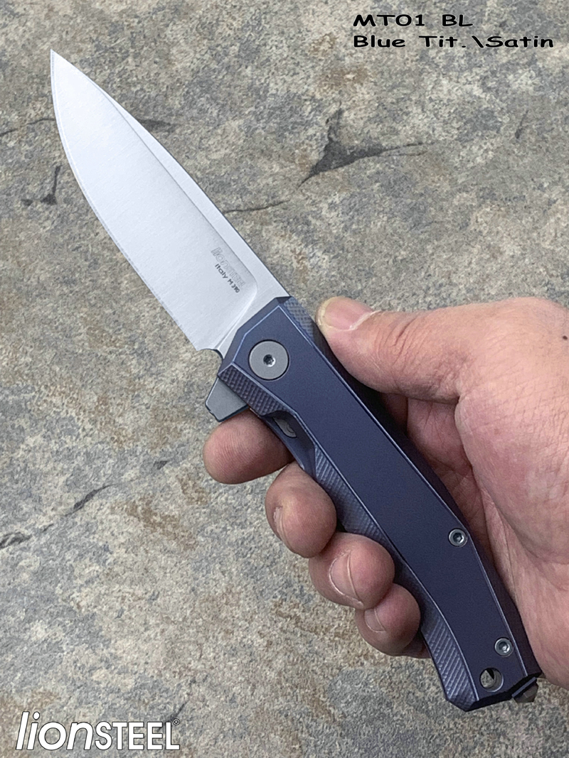 Lionsteel钢狮 MT01 BL Blue Tit.\Satin M390刃材 蓝色钛合金柄 鱼鳍快开折刀