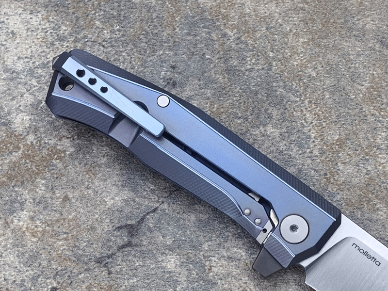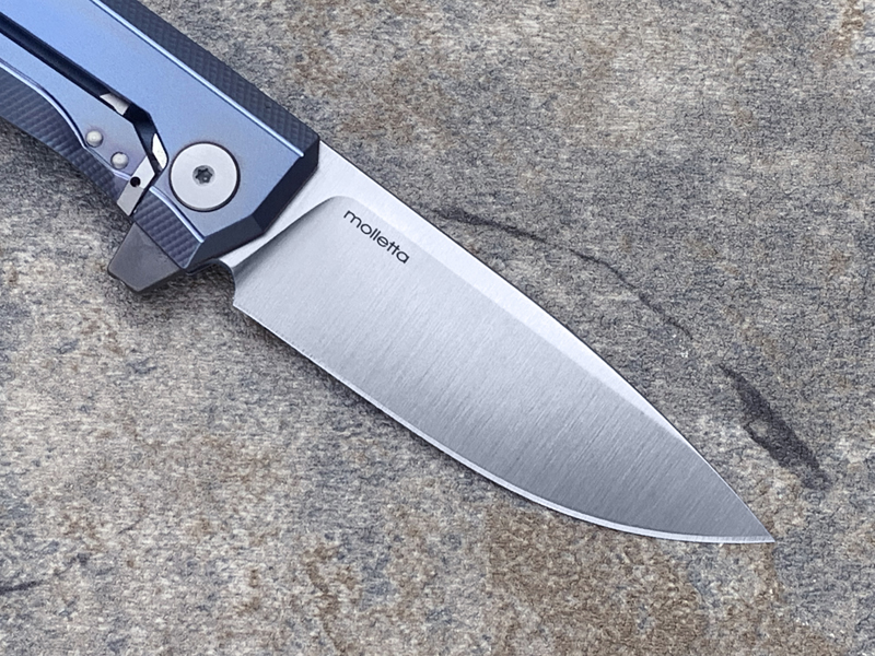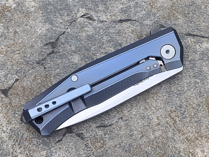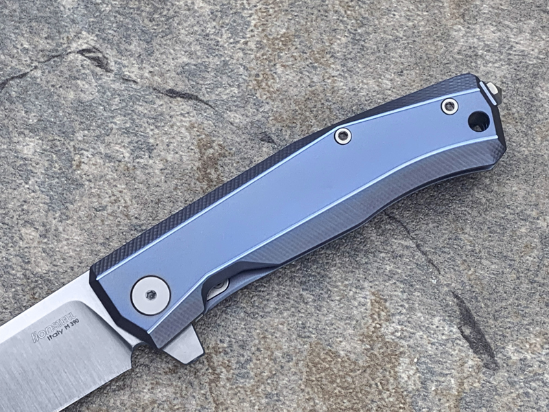 它采用缎面处理的 M390 钢刀片,配备“ReF”(可拆卸翻转系统)和双冠滚珠轴承系统,使刀片更稳定,闭合更顺畅。