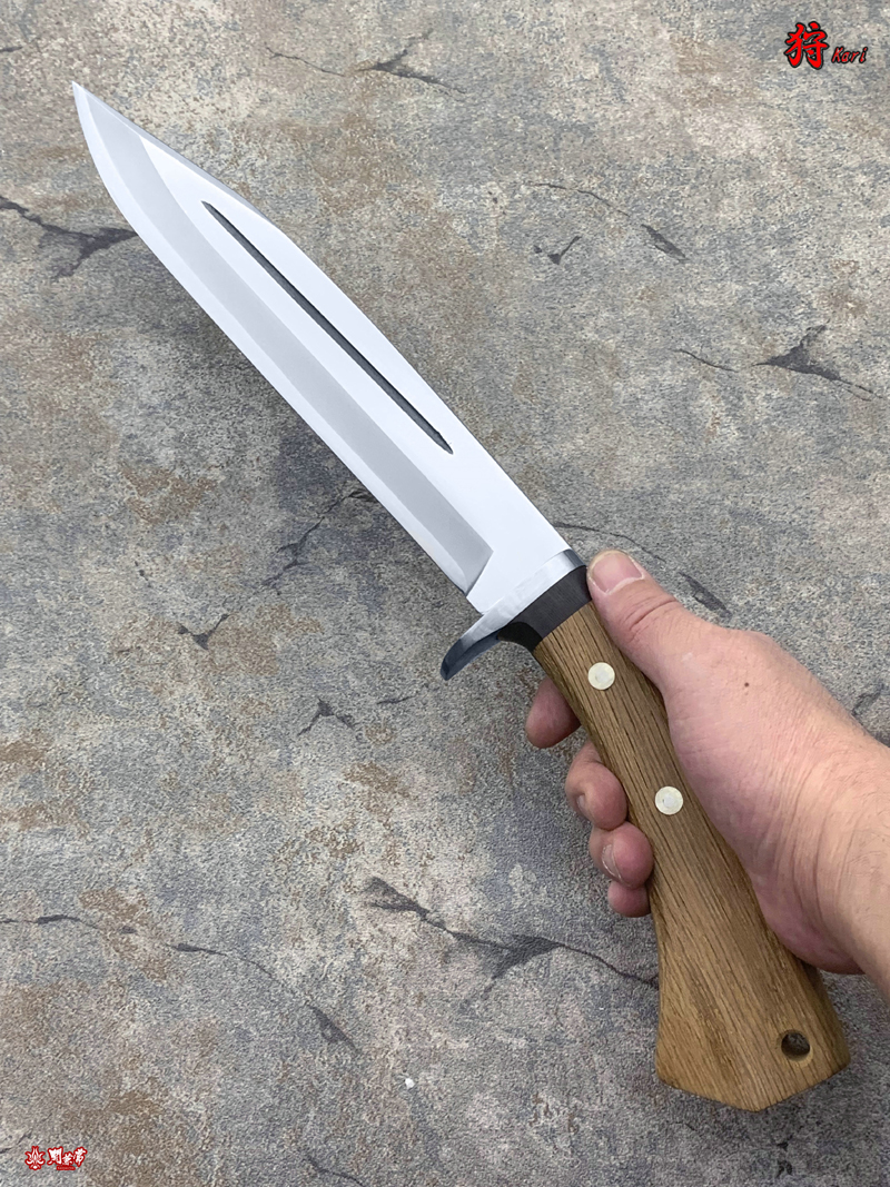 青纸系是含钨的高级钢材,主要应用于优质刀具,如猎熊刀、溪流刀.野外求生刀等。安来钢的硬度在60HRC以上。特别是关兼常"锻炼狞猎"和"百炼狩人匠”系列刀,其作品造型优雅,刀刃极锋利,反复锻炼的刀片留有无数的锻纹,着重切割与劈砍能力。