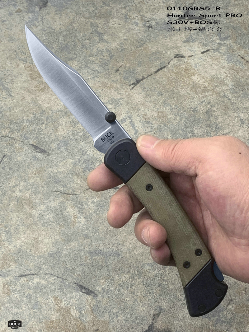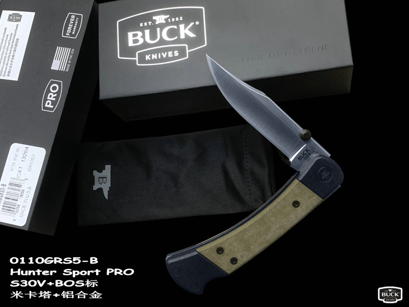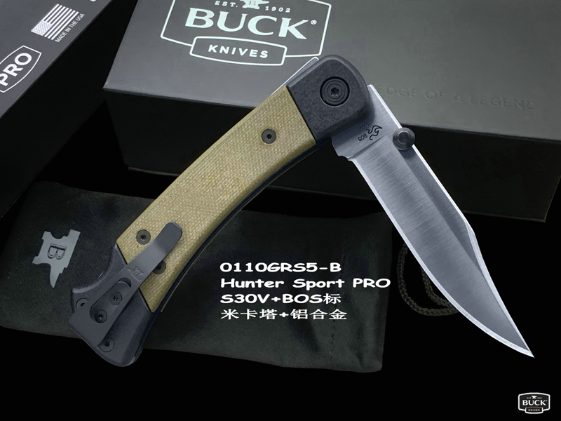 BUCK 巴克0110GRS5-B Hunter Sport Knife S30V BOS标 米卡塔柄 专业运动版 折叠猎人折刀(现货)
