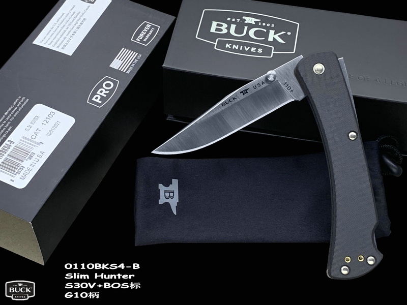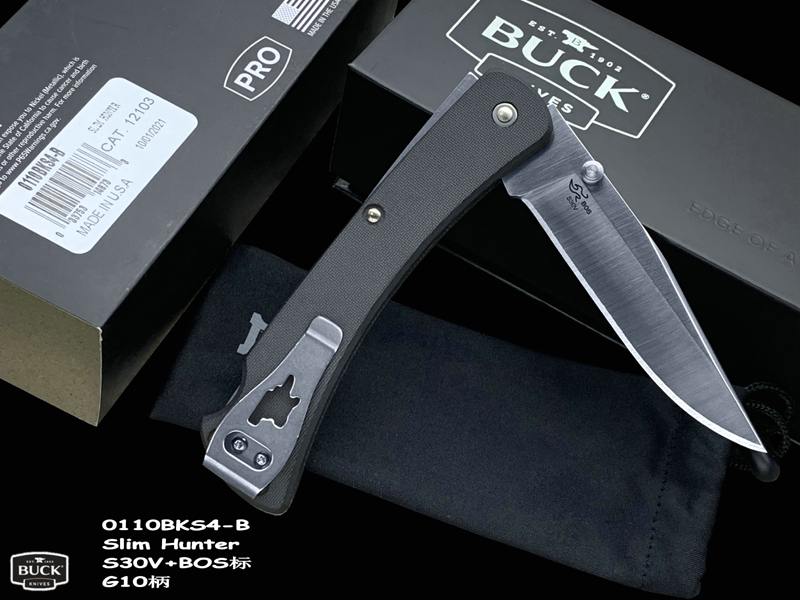 BUCK 巴克0110BKS4-B Slim Hunter PRO S30V BOS标 黑色G10柄 修长猎人专业版折刀(现货)
