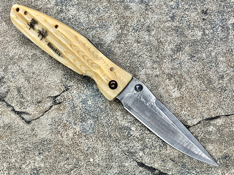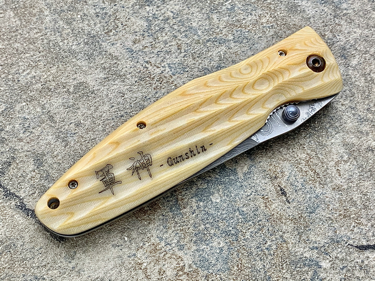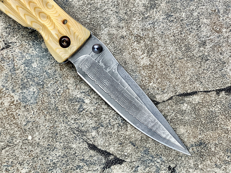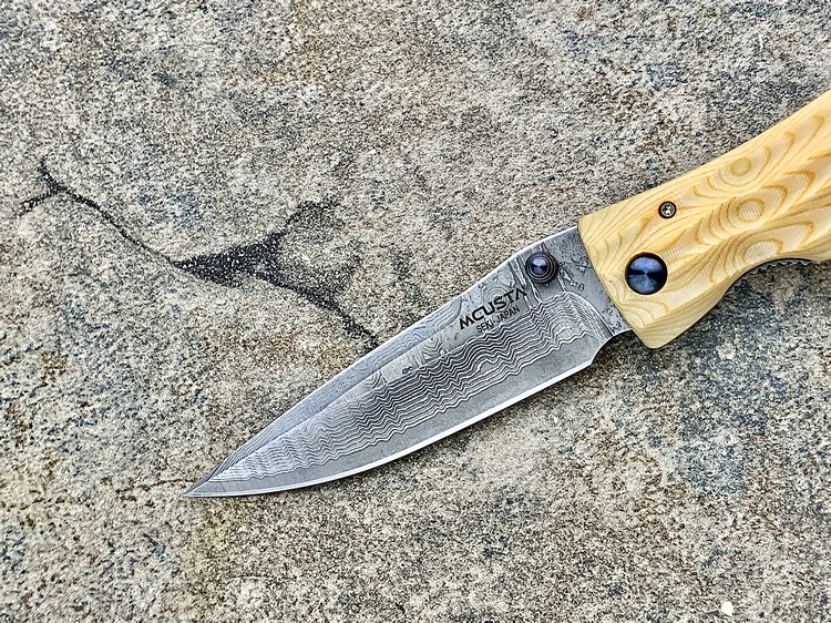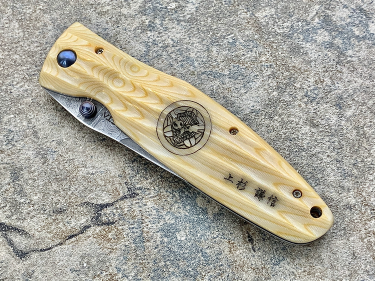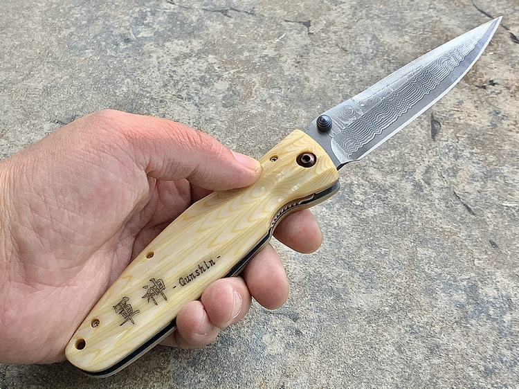 全长:213mm 刃长:86mm 刃厚:3mm 刃材:VG-10核心大马士革 硬度:60HRC 闭合:119mm 重量:127g 柄材:米卡塔 产地:日本