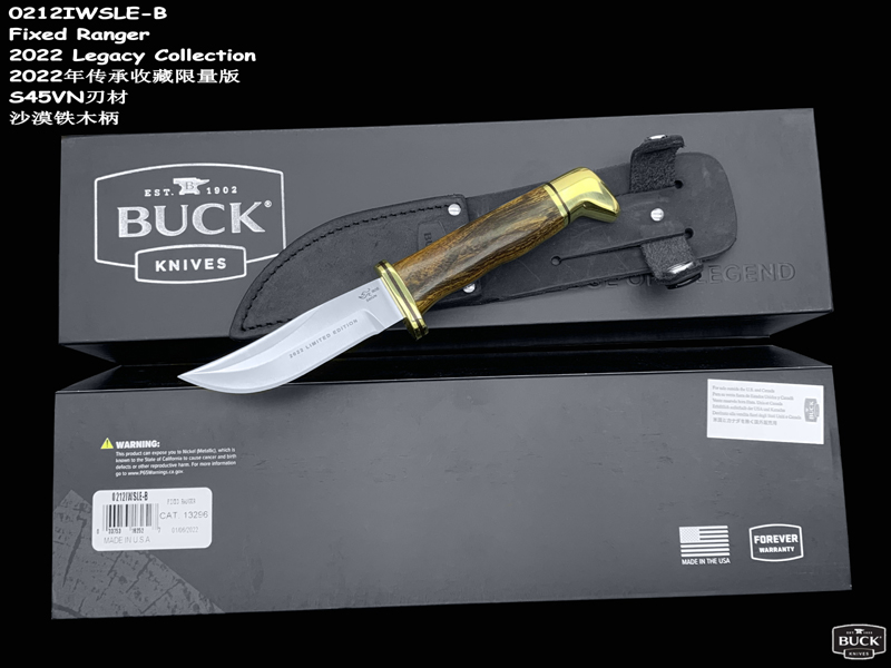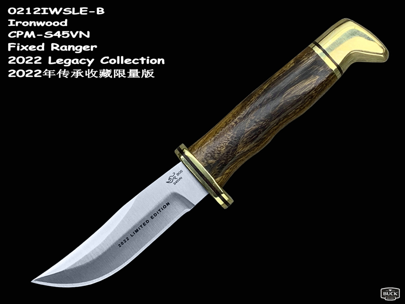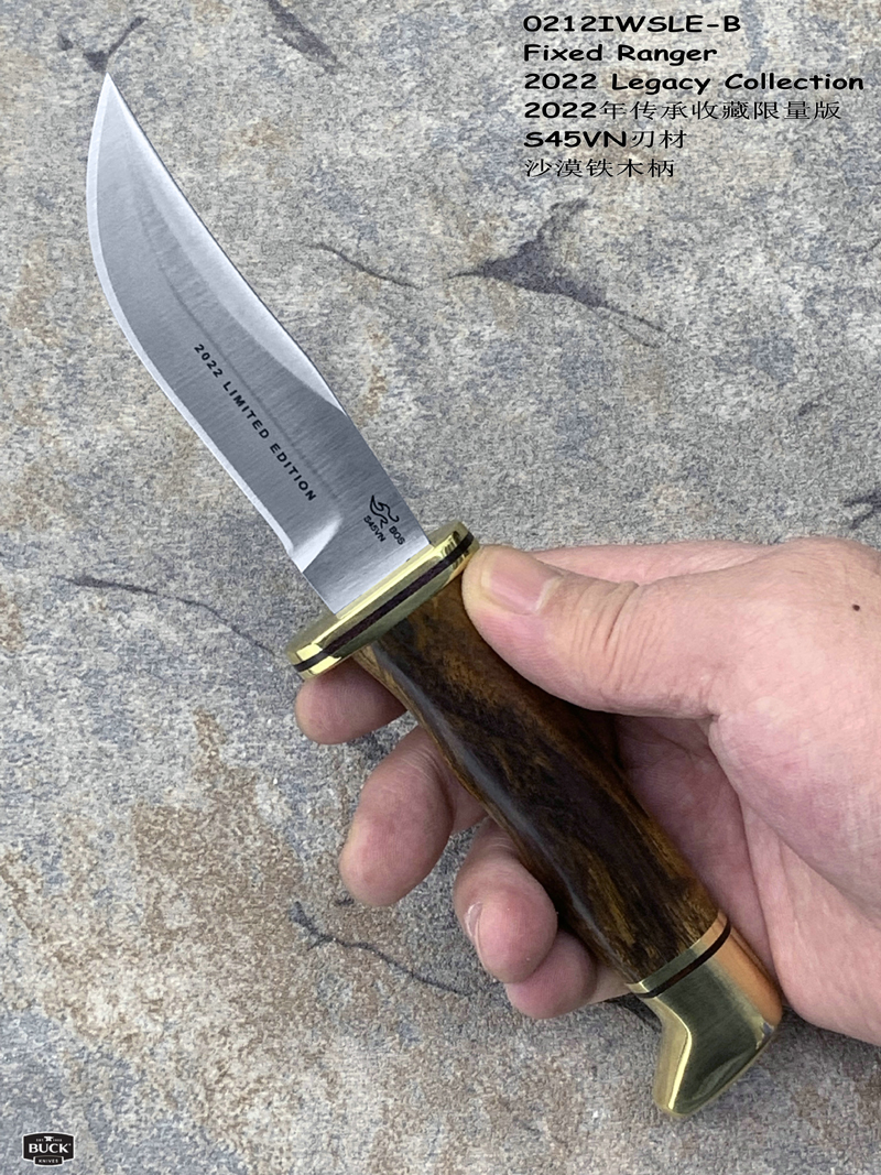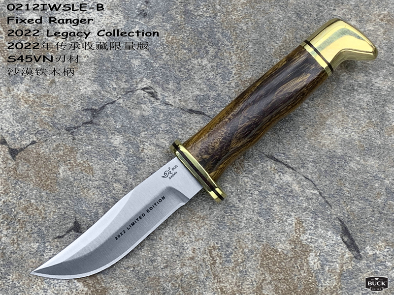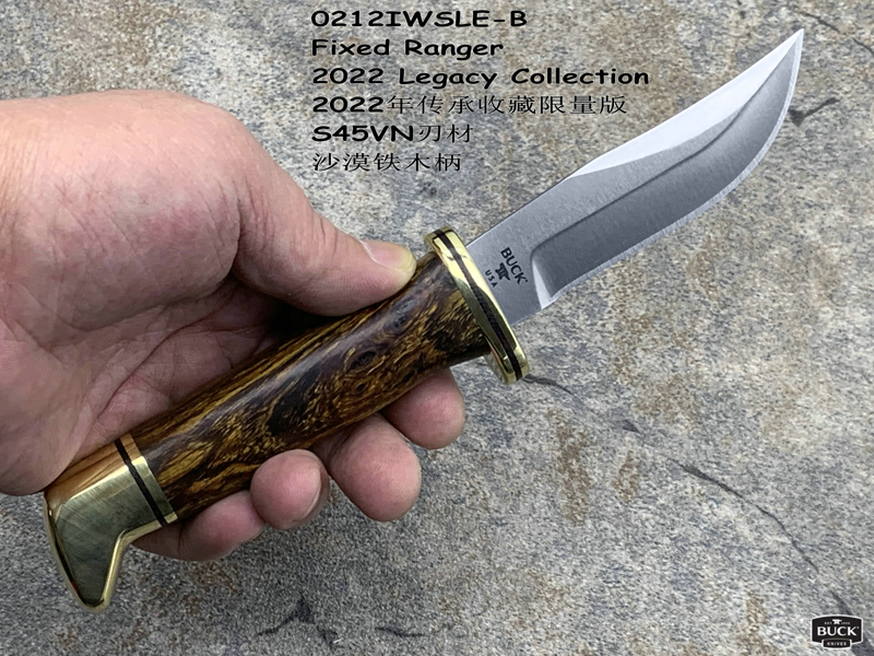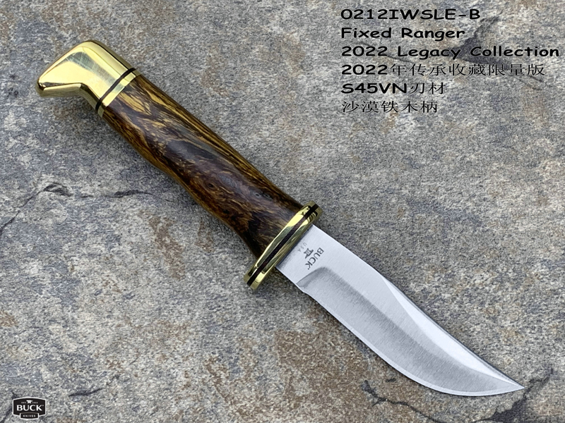 简单描述: BUCK 巴克 0212IWSLE-B Fixed Ranger S45VN刃材 沙漠铁木柄 游骑兵直刀2022年传承收藏限量版