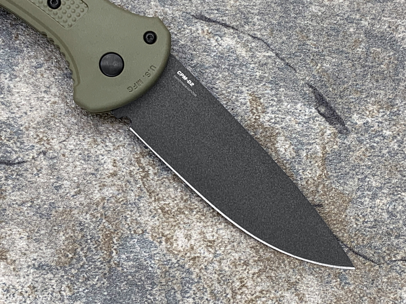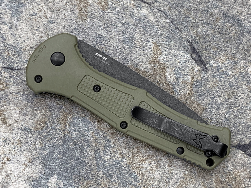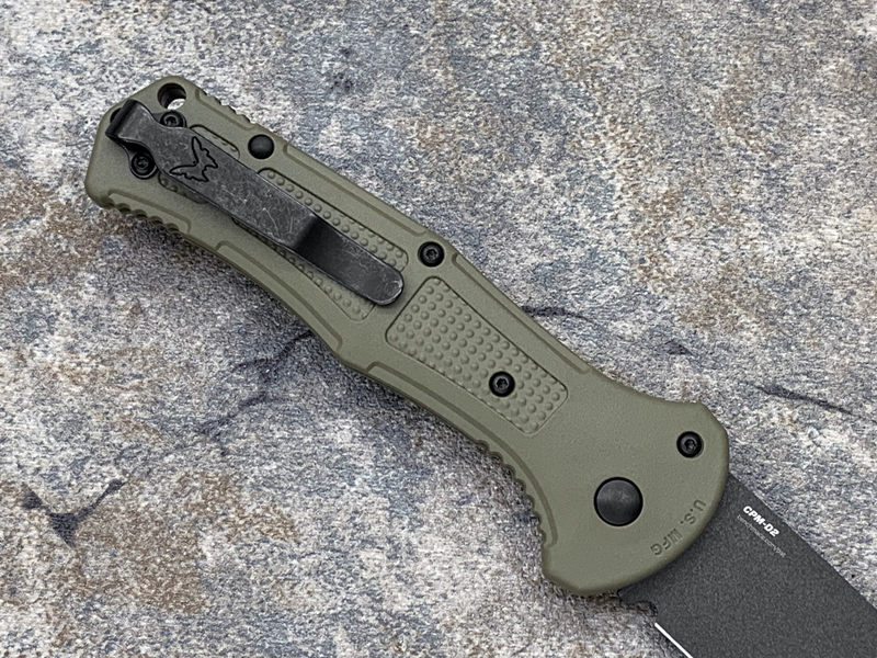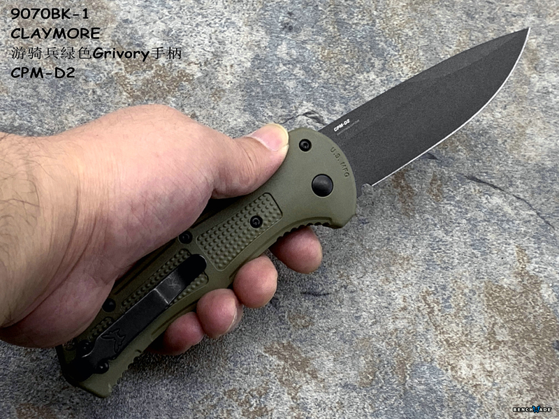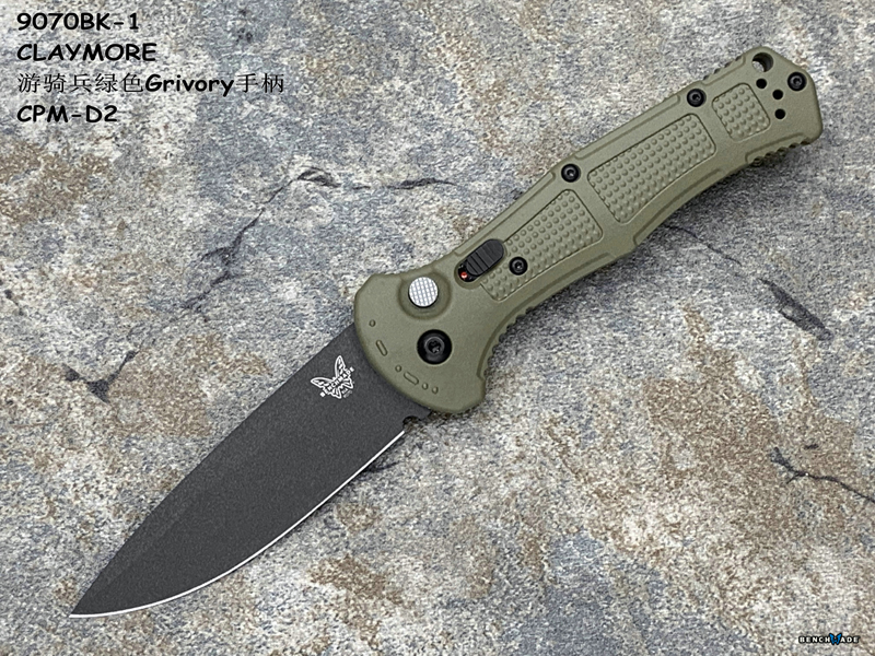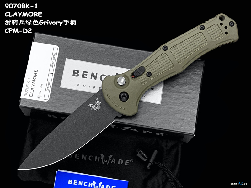 Benchmade 蝴蝶 9070BK-1 CLAYMORE 游骑兵绿色Grivory手柄 CPM-D2钴黑刃全刃战术侧跳(现货)