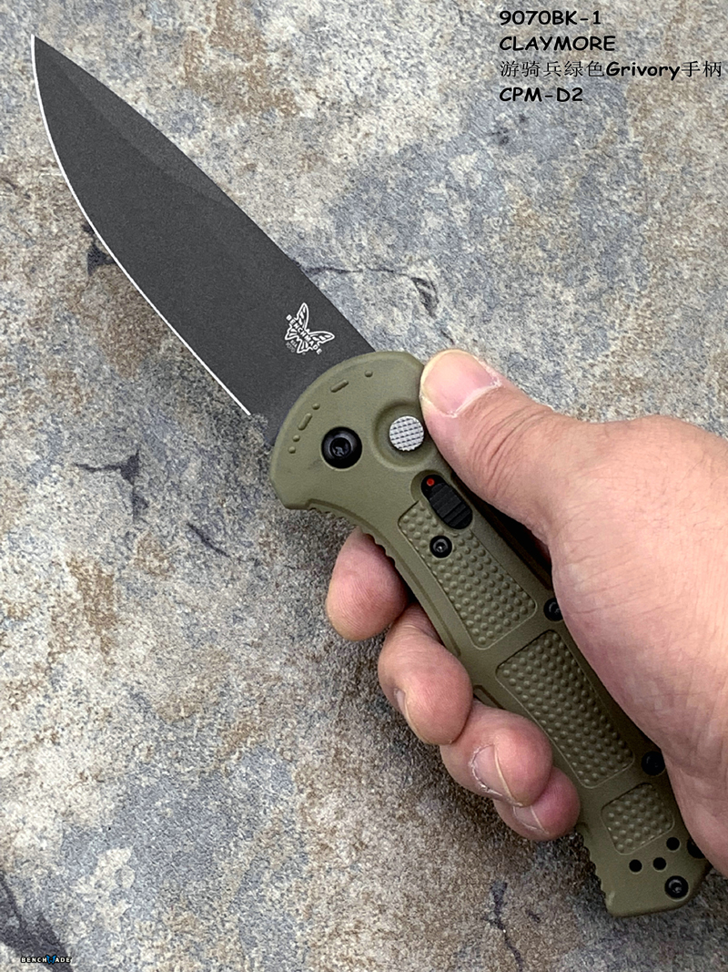 Benchmade 蝴蝶 9070BK-1 CLAYMORE 游骑兵绿色Grivory手柄 CPM-D2钴黑刃全刃战术侧跳