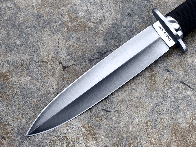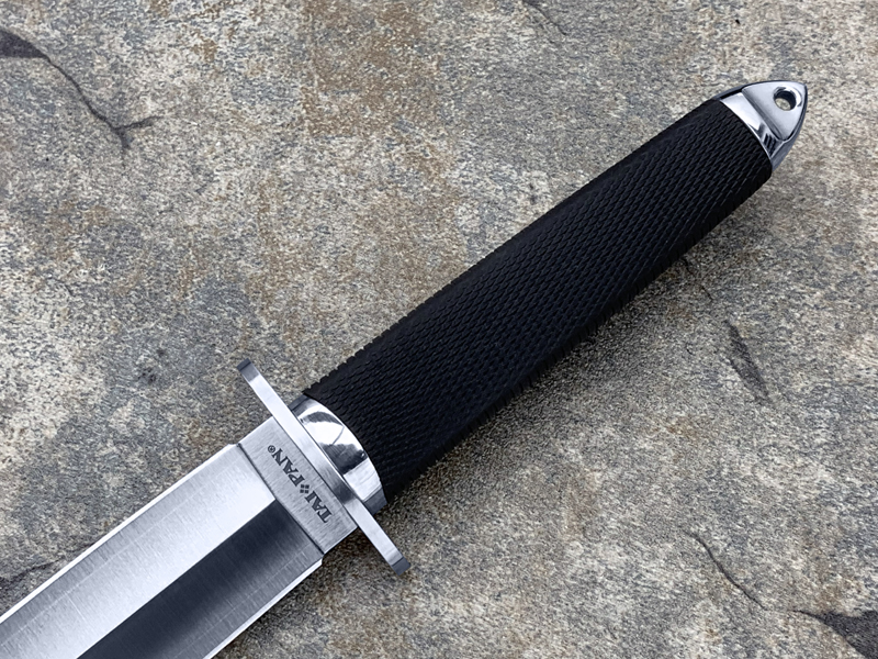 Tai Pan具有第一流匕首所有最好的特征。大多数匕首都是细长瘦削的刀尖,这样在使用的过程中很容易断掉。TAI PAN的特征是具有非常强健和宽厚的刀尖,这样足够击穿物体而坚韧的刀尖不会受到损伤。黑色KRATON制成的椭圆型刃柄,握持感非常好,保证了刀子在大力使用时不会有滑动和翻滚的现象发生。