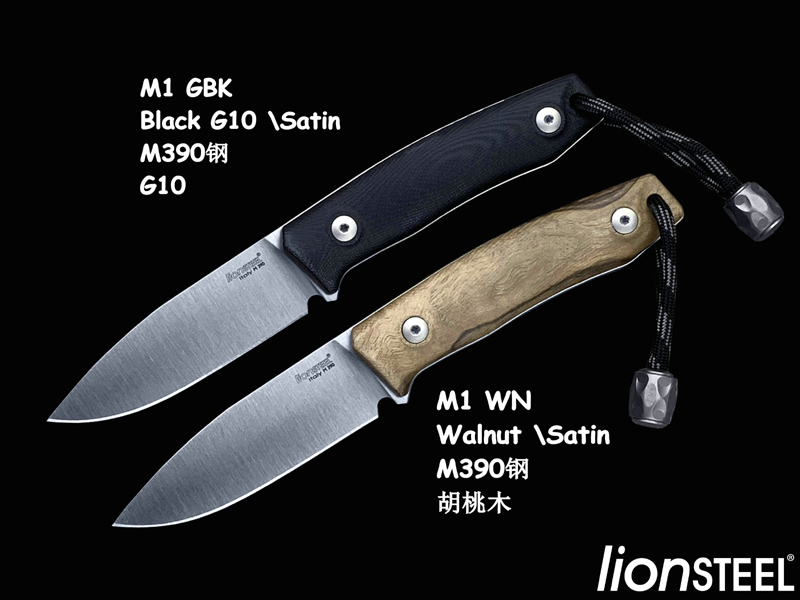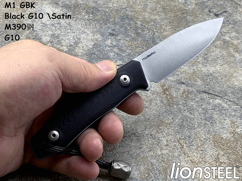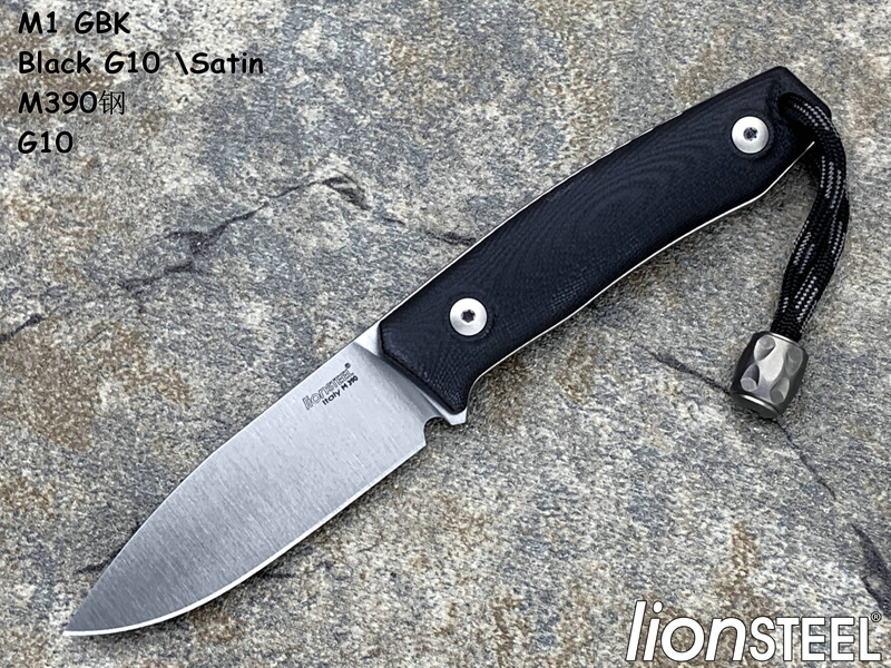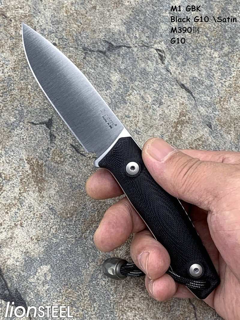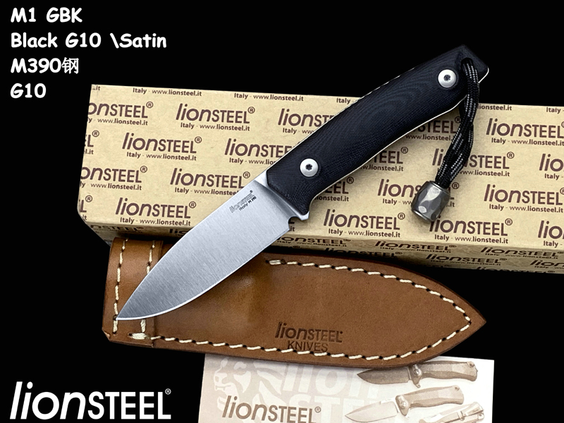 Lion Steel 钢狮 M1 GBK Black G10 \Satin M390刃材 G10柄 精致手工皮套小直(暂无现货)