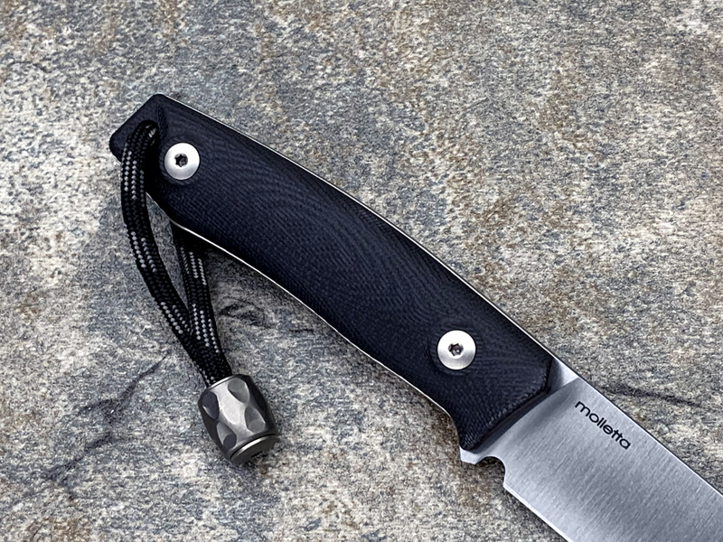 M390刃材细腻拉丝,带钛合金精美吊坠。精致手工皮套。握持手感舒适,非常适合日用。