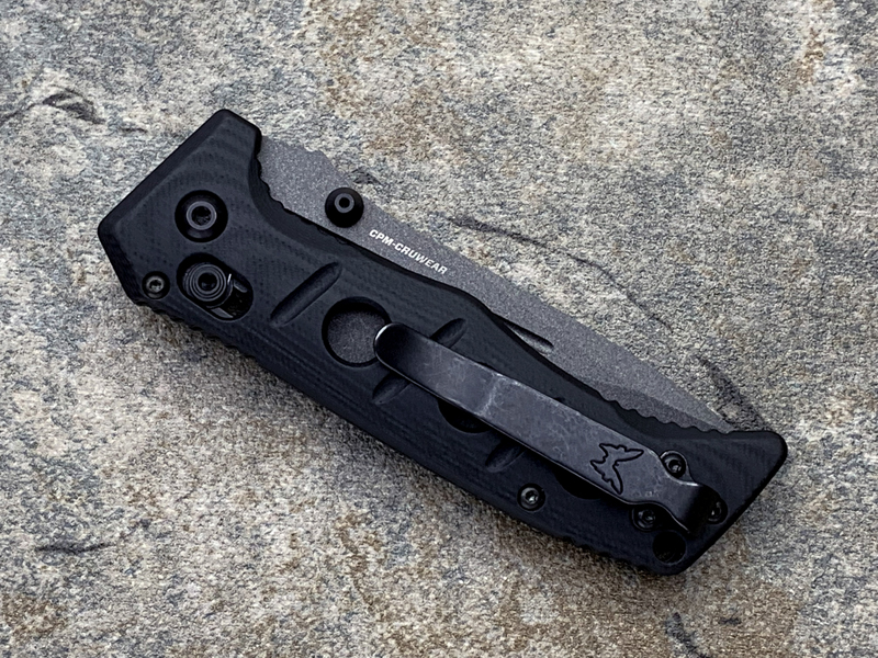 全长:194mm 刃长:82mm 刃厚:3.5mm 刃材:CPM-CRUWEAR超级强壮工具钢 硬度:63-65HRC 闭合:114mm 柄材:G10 产地:美国 重量:130g 蝴蝶的273 Adamas系列作品是由定制刀匠Shane Sibert与美国军方代表Major Jeff Strueker所共同合作的战术作品。Major Strueker在1987-2011年期间服役于美国陆军,其大多数时间隶属于第75游骑兵团(The 75th Ranger Regiment),此外他还是蝴蝶刀具的忠实粉丝。Adamas系列作品尺寸和分量感十足,适合把握且破坏力十足,完全符合战术需求。 这把273 是由CPM-CRUWEAR超级强壮工具钢锻造的水滴头折刀,在野外环境下能提供出色的切削能力和易打磨能力。CPM-CRUWEAR超级强壮工具钢的全刃刀身切削性能出色,钢材的强度和较大尺寸让刀具更加适合劈砍,为了更好的保障刃部的完整性,刀身的减压血槽可以有效的将刀部受力进行分散。刀身表面使用沙色涂层处理,更加防锈也更符合战术使用。 刀柄拥有黑色涂层的不锈钢内衬,有效的保障的柄部强度,外部使用G-10材质贴附以提供出色的手感。刀柄部分使用镂空切割技术刻有减重/排汗孔,既能有效减轻刀具重量也能在长时间握持后也不易出现手部出汗的情况。刀柄尺寸非常适合手握,在戴手套情况下也能舒适握持。刀具使用轴锁的双头轻推即可迅速出刀,并使用蝴蝶著名的轴锁机制收刀。刀具还配备一个可换边安装的黑色刀夹和拥有携行装置的重型尼龙刀套。 CPM-CRUWEAR粉末钢,可以说是升级版的A2和D2钢,通过粉末冶炼技术,让钢材分子重新组合,达到了硬度和韧性最佳的组合;使得CPM-CRUWEAR拥有了更高的硬度和更高的保持性!