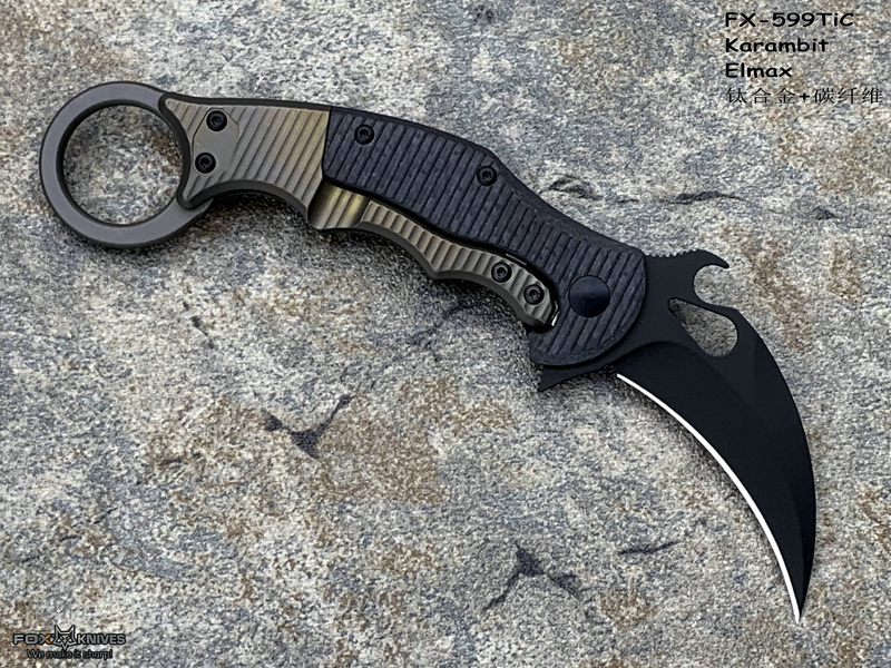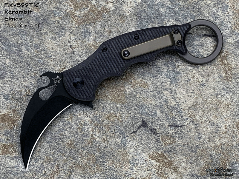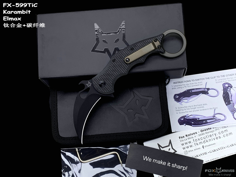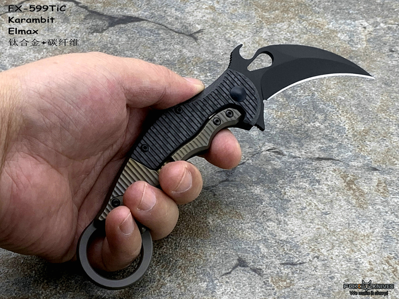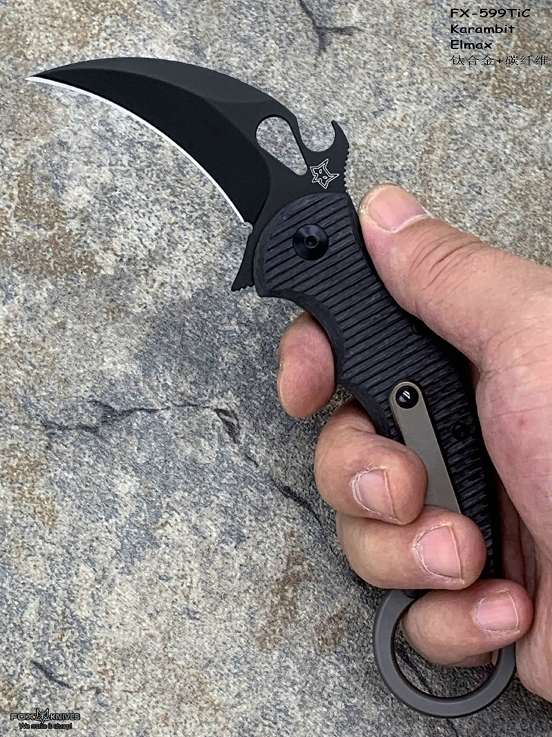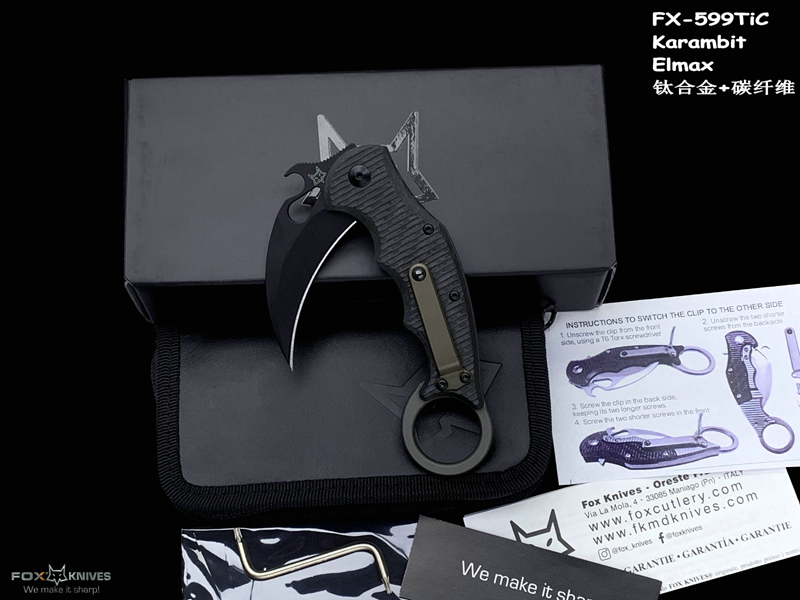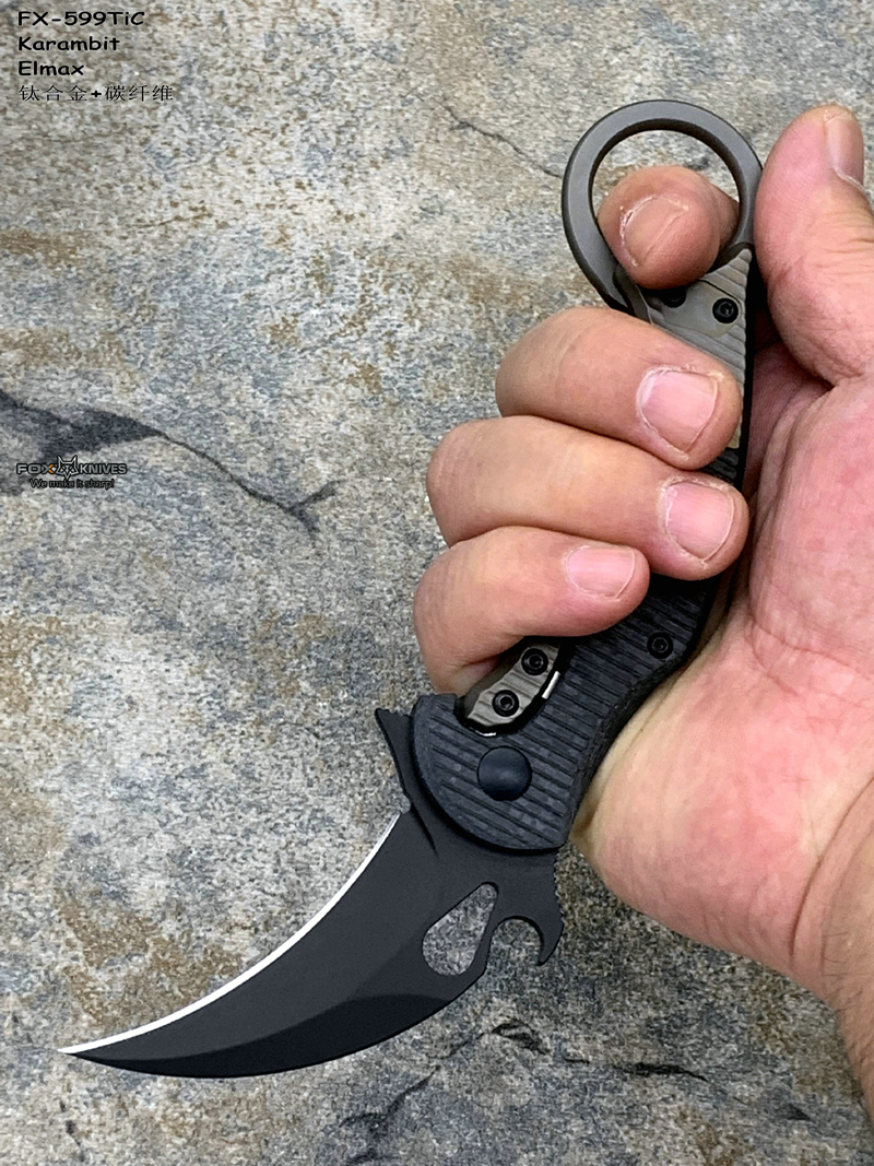 FOX 意大利狐狸 FX-599TiC Karambit Elmax刃材 碳纤维+钛合金柄 指环爪刀(暂无现货)