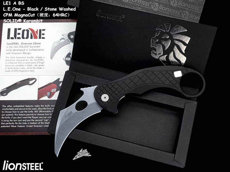 lionSTEEL钢狮 LE1 A BS Emerson合作 CPM MagnaCut刃材(硬度64HRC)铝合金柄 SOLID® Karambit折叠爪刀...
