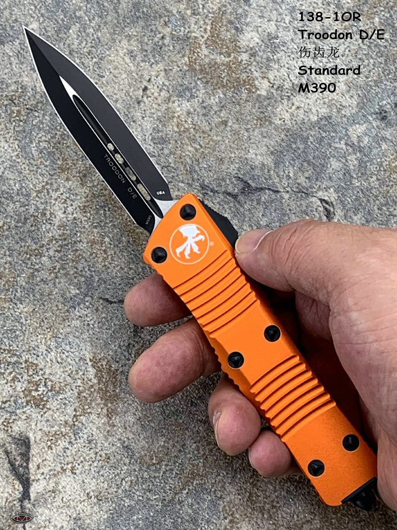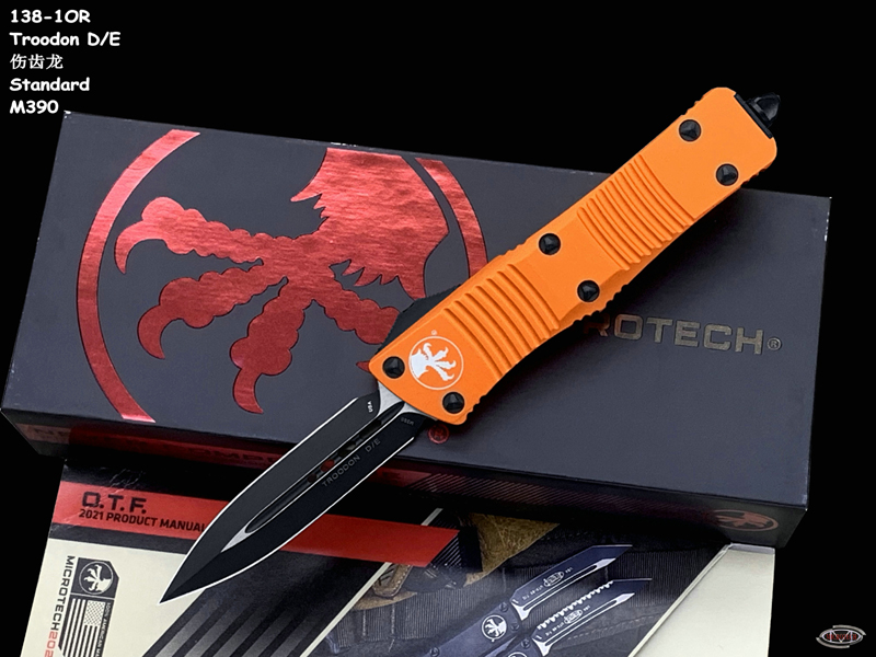 Microtech 微技术 138-1OR Troodon 伤齿龙 D/E Orange Standard M390刃材 橘色柄全刃双锋直跳(暂无现货)
