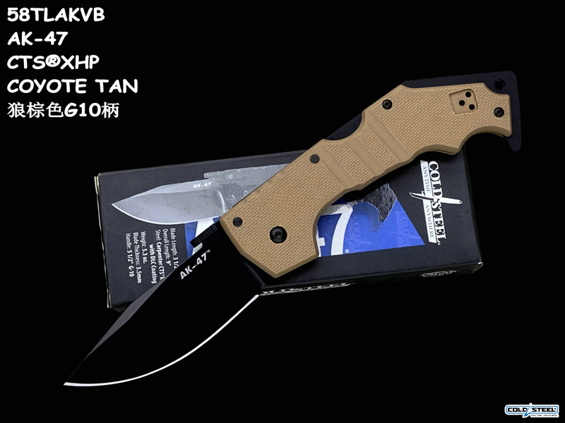 Coldsteel 冷钢 58TLAKVB AK-47 CTS®XHP刃材 COYOTE TAN 狼棕色G10柄战术折刀(暂无现货)