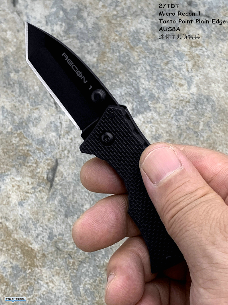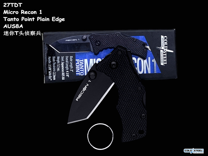 简单描述: Coldsteel 冷钢 27TDT Micro Recon 1 Tanto Point Plain Edge AUS8A刃材 G10柄 迷你T头侦察兵折刀