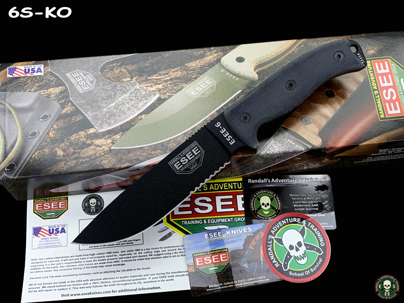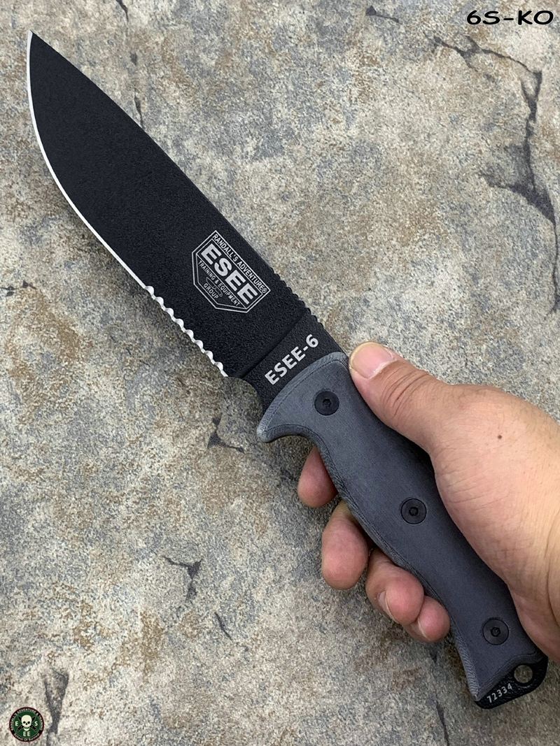 ESEE 6S-KO 1095刃材黑色粉末涂层 黑色米卡塔柄生存刀-无鞘