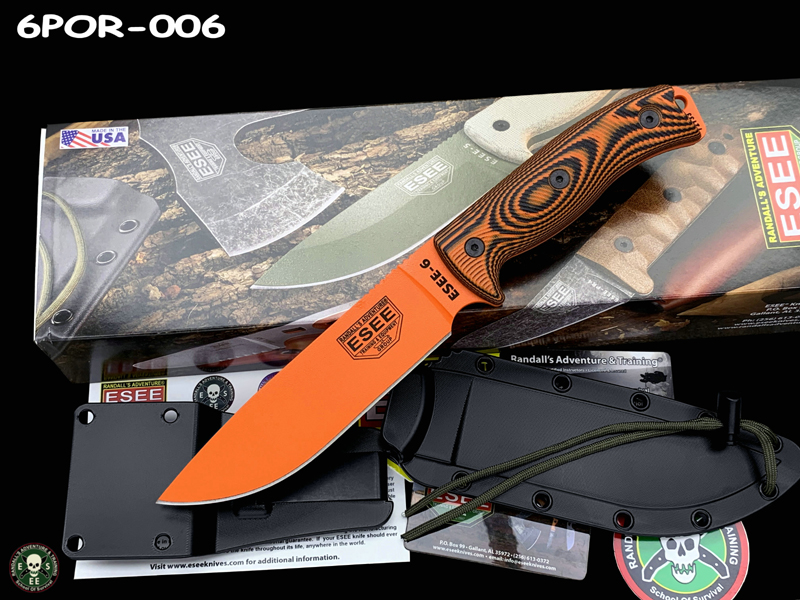 ESEE 6POR-006 1095刃材橘色粉末涂层 黑色/橘色3D加工G10柄生存刀