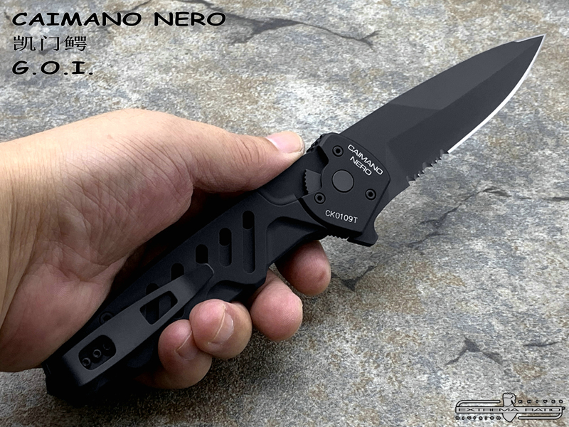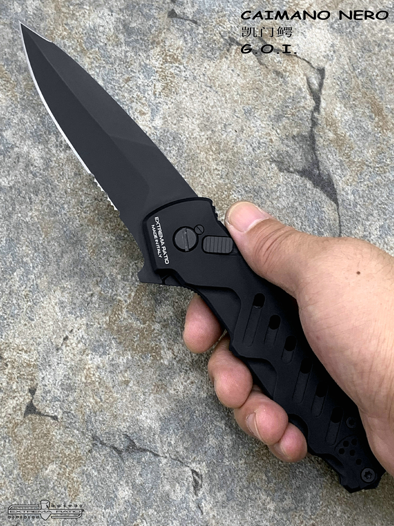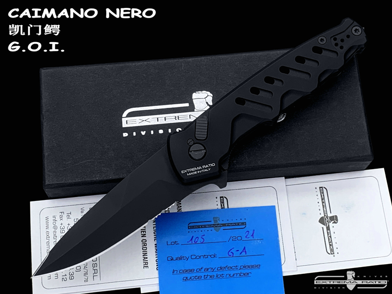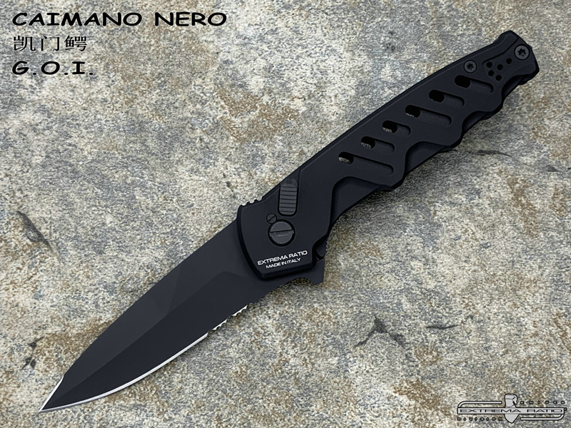 Extrema Ratio 极端武力 CAIMANO NERO 凯门鳄 N690刃材 阳极氧化铝柄 意大利海军G.O.I.专用战术侧跳04.1000.0169/BLK(暂无现货)