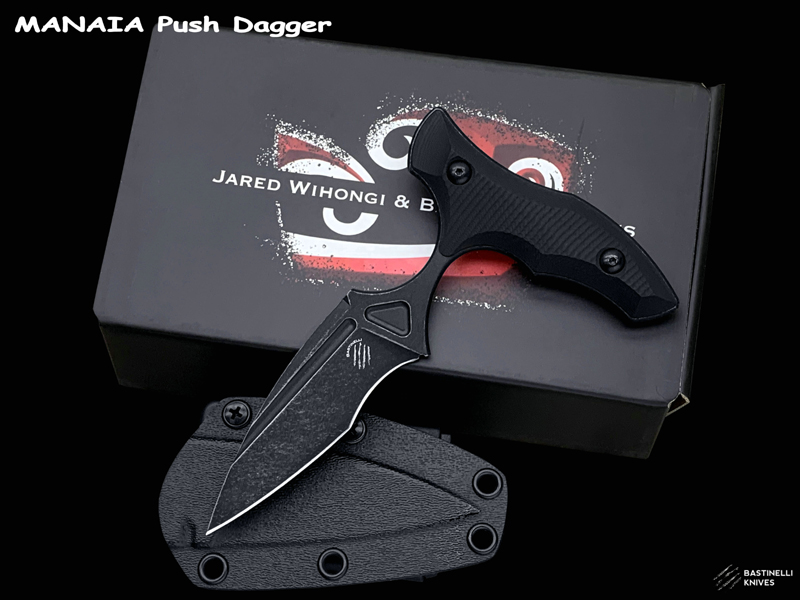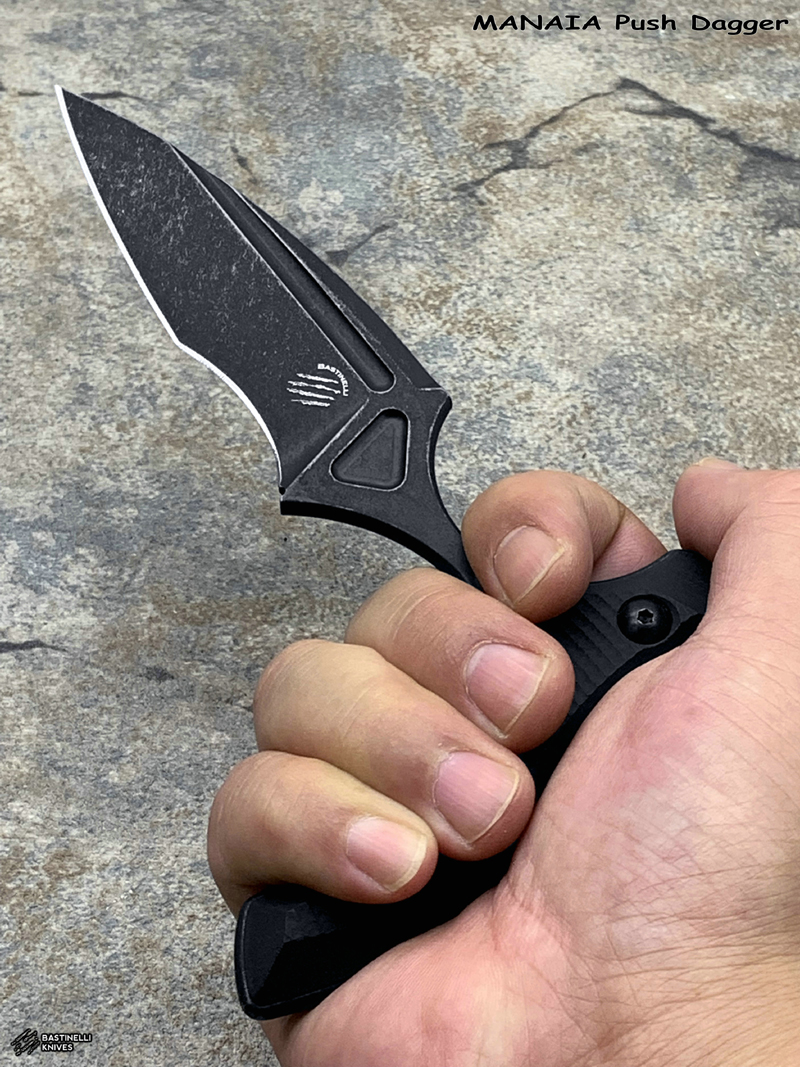 Bastinelli 巴斯蒂内利 MANAIA Push Dagger N690Co刃材黑色沧桑石洗 黑色G10柄手刺(现货)