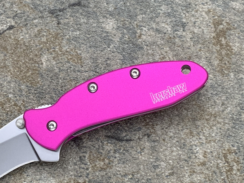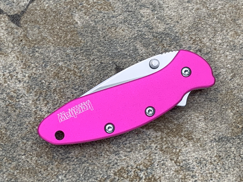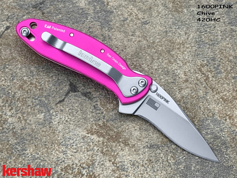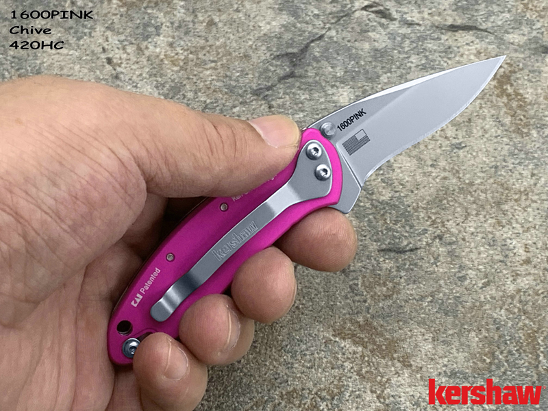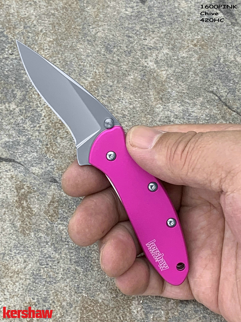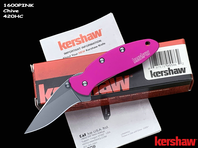 Kershaw卡秀1600PINK Chive韭菜 Ken Onion设计 420HC刃材 粉色铝合金柄 鱼鳍助力快开折刀(现货)
