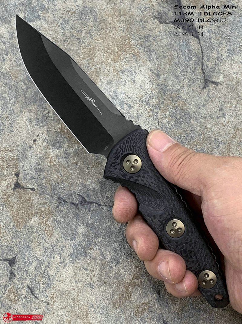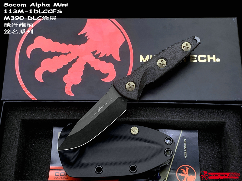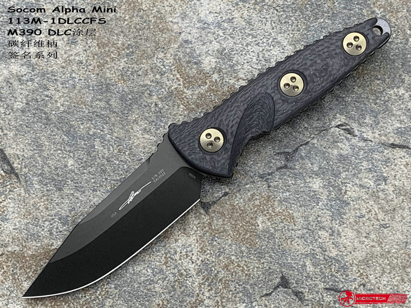 Microtech微技术113M-1DLCCFS Socom Alpha Mini S/E M390刃材DLC涂层 碳纤维柄 签名系列 战术直刀(暂无现货)